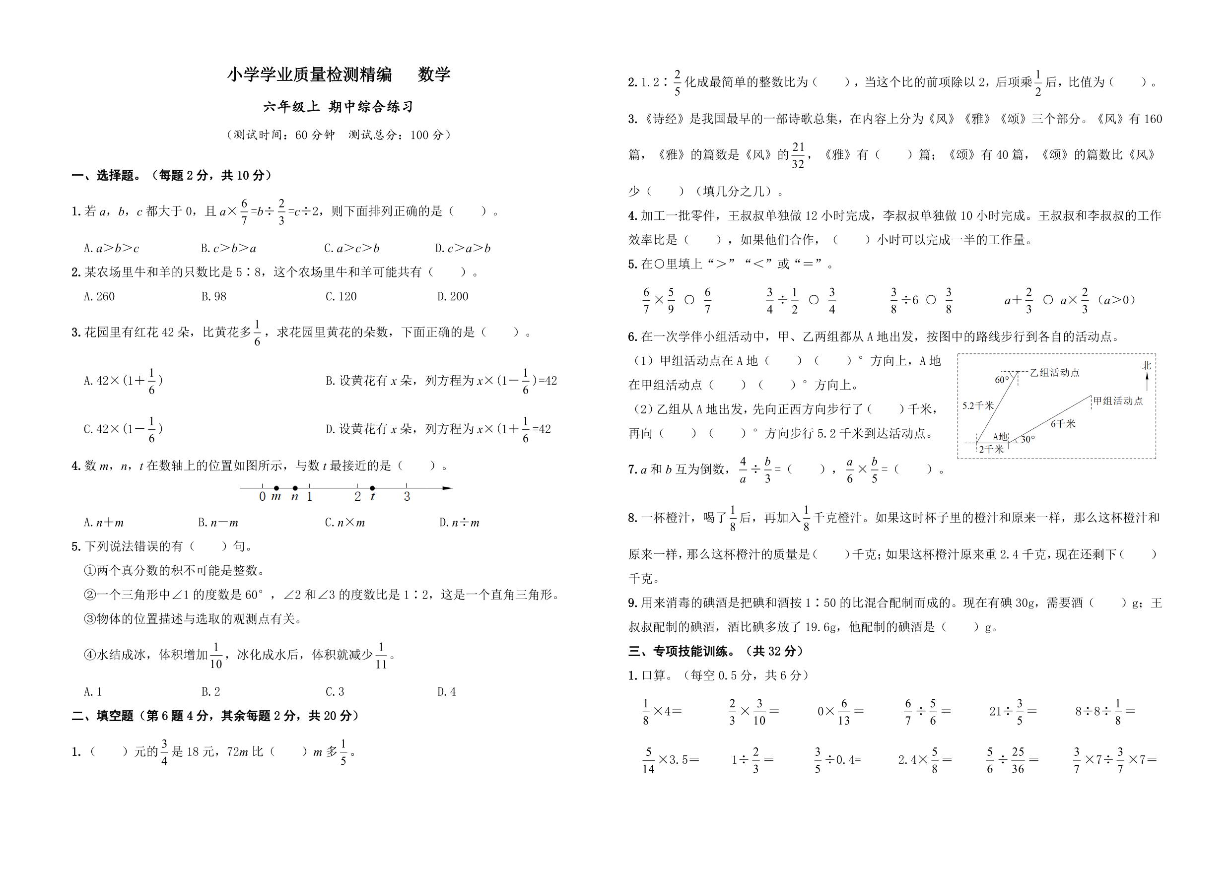 六年级数学人教版上册期中卷