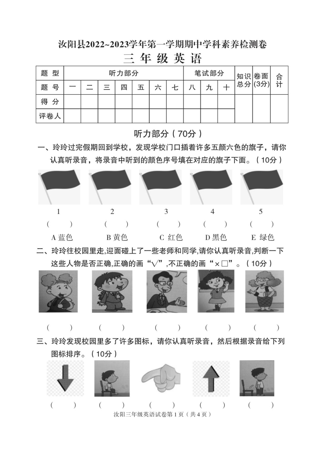河南省洛阳市汝阳县2022-2023学年上册期中考试试卷三年级英语(外研版)【无听力音频】