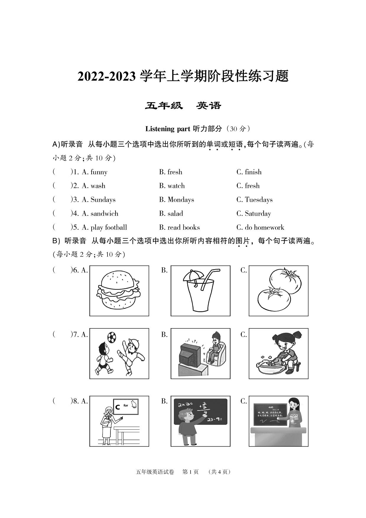 湖南省岳阳市临湘市2022-2023学年五年级上学期期中质量检测英语试题(PEP版)【无听力音频】