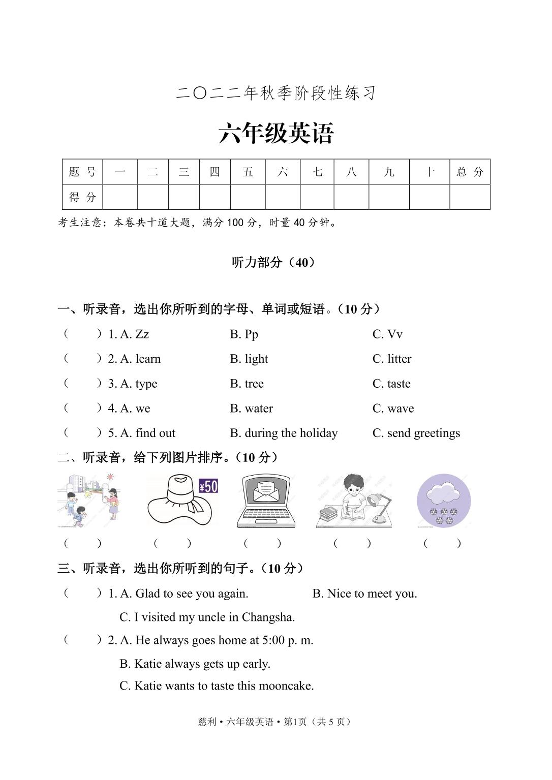 湖南省张家界市慈利县2022-2023学年六年级上学期期中教学质量检测英语试题(湘少版)【无听力音频】
