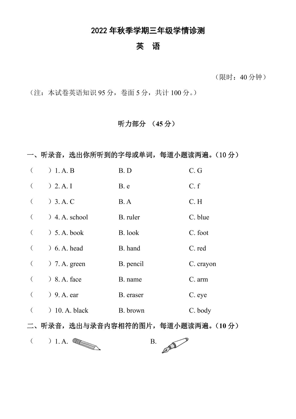 河南省三门峡市湖滨区2022-2023学年上册期中考试试卷三年级英语(PEP版)【无听力音频】
