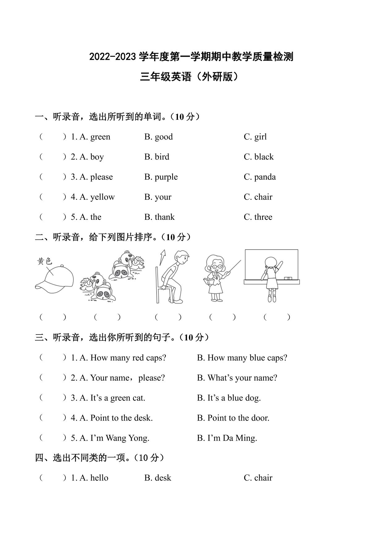 河南省汝州市某校2022-2023学年上册期中考试试卷三年级英语(外研版)【无听力音频】