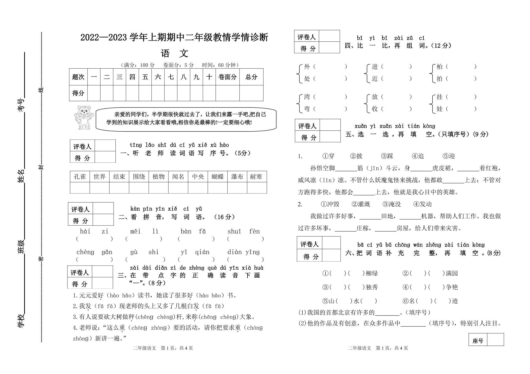 二年级语文人教版上册期中卷