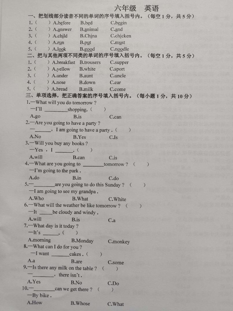 河南省驻马店市确山县2022-2023学年上学期期中素质测试六年级英语(外研版)【无听力音频】