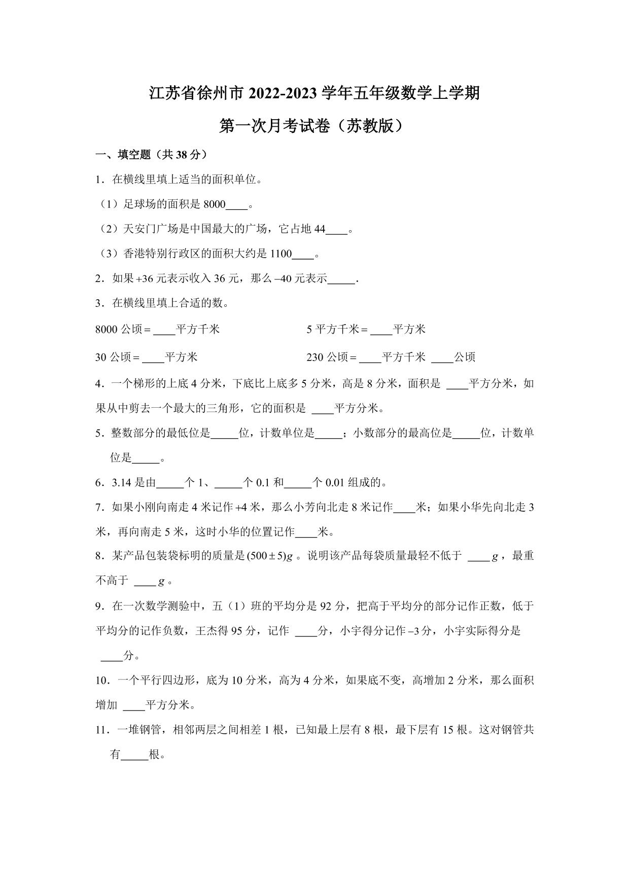 江苏省徐州市2022-2023学年五年级数学上学期第一次月考试卷(苏教版)