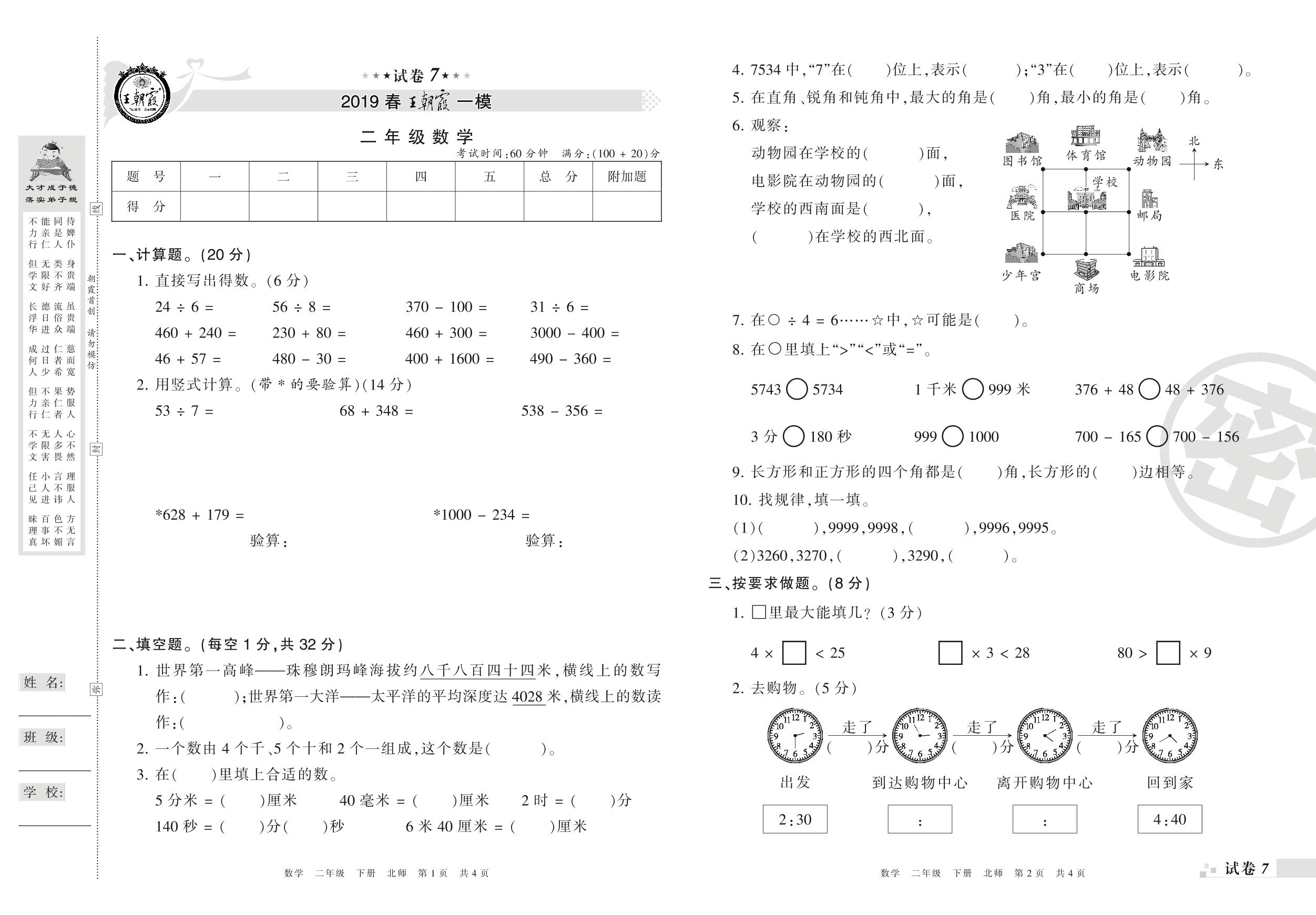 王朝霞期末模拟卷二年级下册数学(北师版)_R21080395956【7】