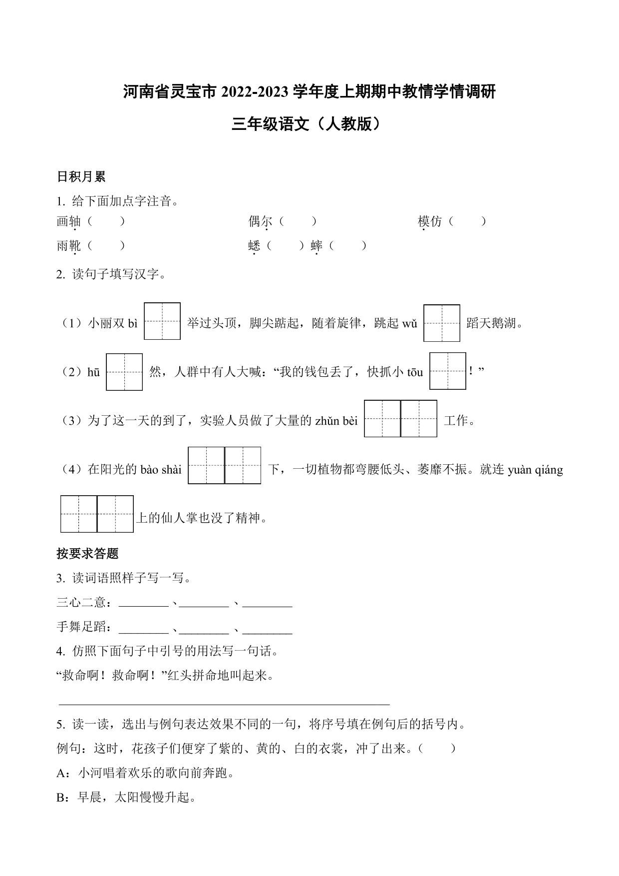 河南省灵宝市2022-2023学年度上期期中教情学情调研三年级语文(人教版)