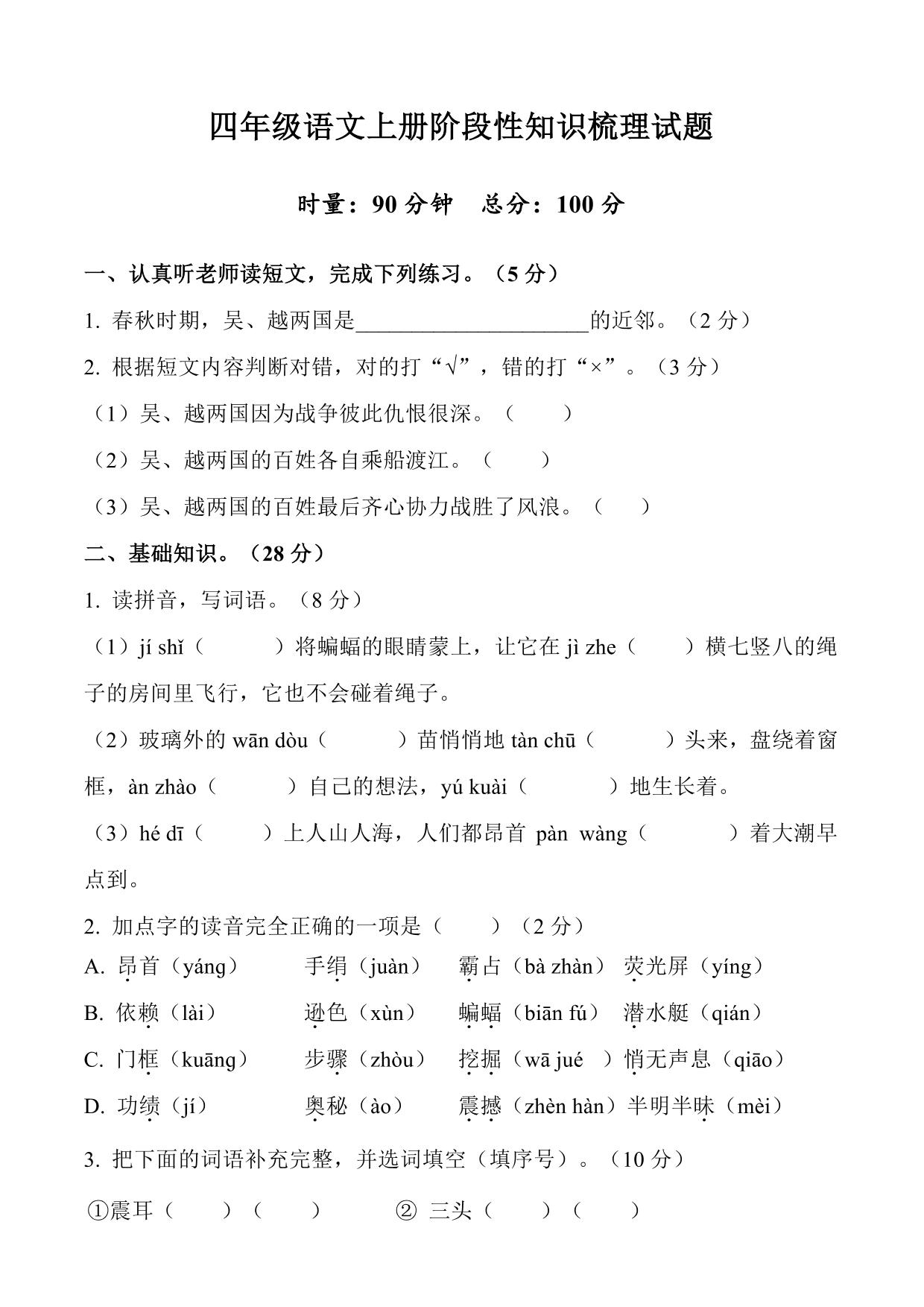 湖南省株洲市茶陵县部分校联考2022-2023学年上学期11月期中试题四年级语文(人教版)