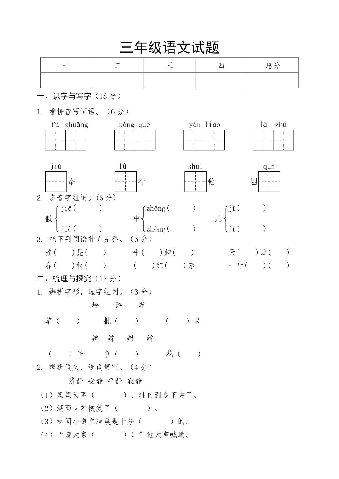 山东省菏泽市巨野县2022-2023学年三年级上学期期中考试语文试题(人教版)
