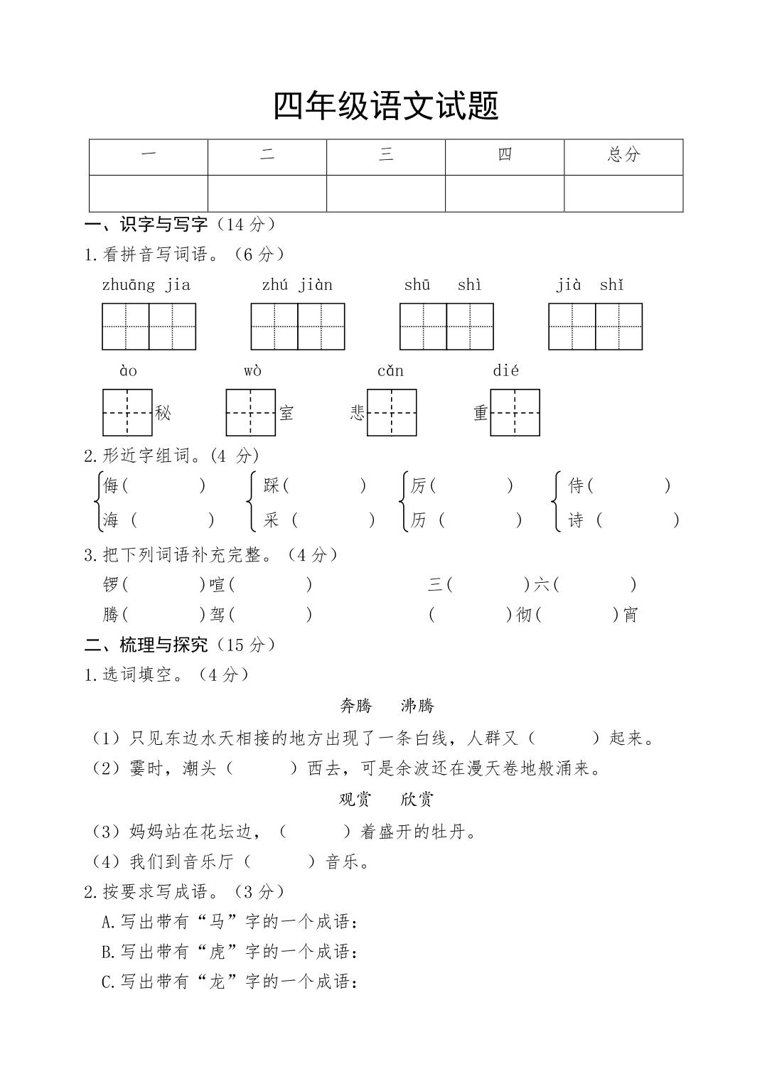 四年级语文人教版上册期中卷