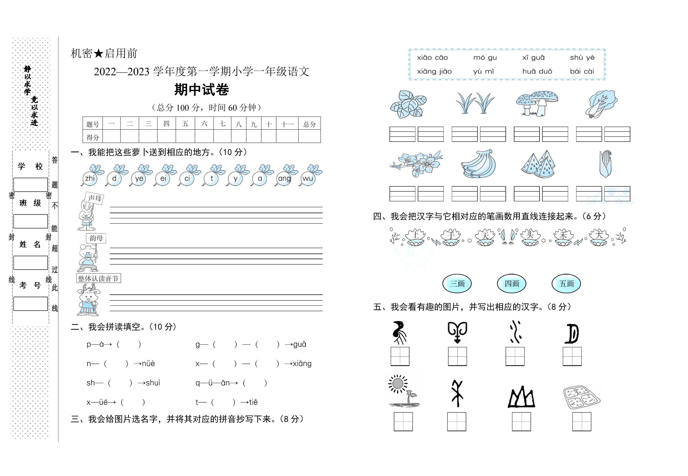 一年级语文人教版上册期中卷