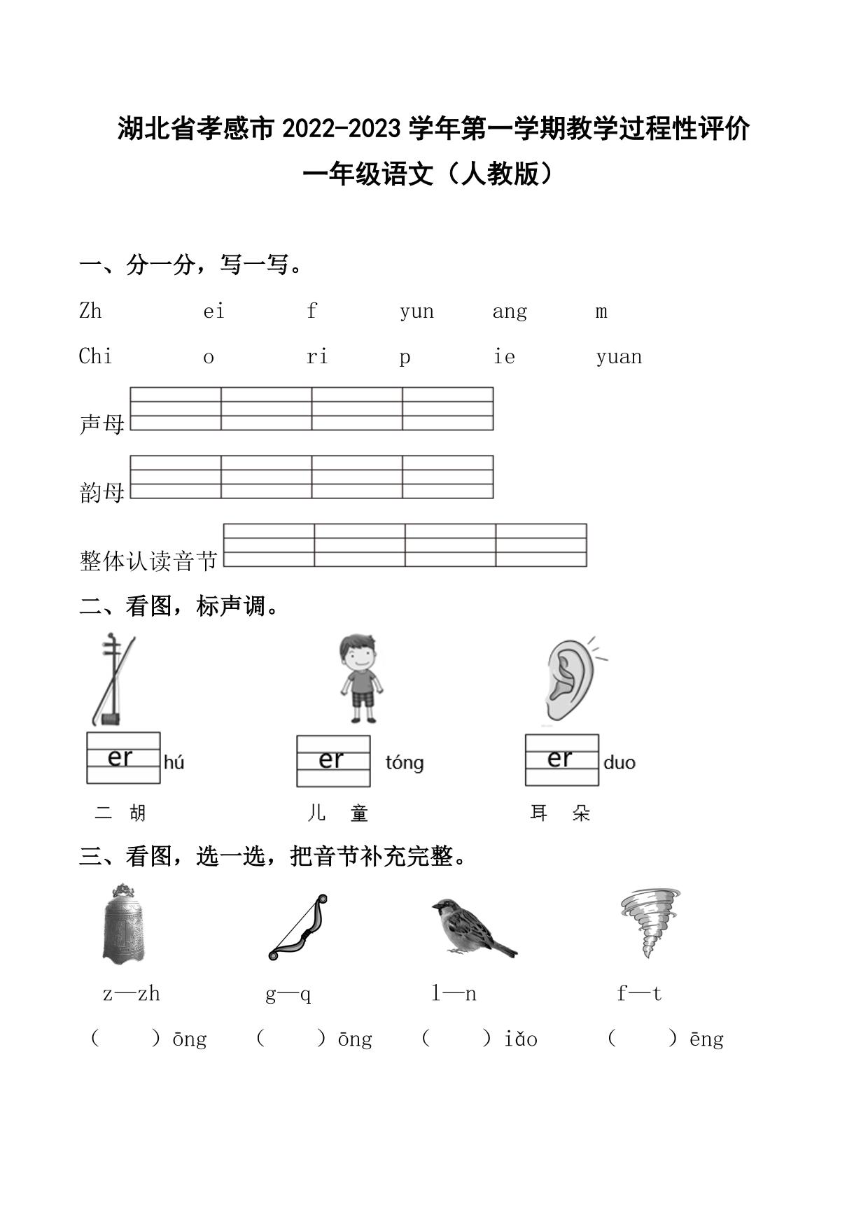 湖北省孝感市2022-2023学年第一学期教学过程性评价一年级语文(人教版)