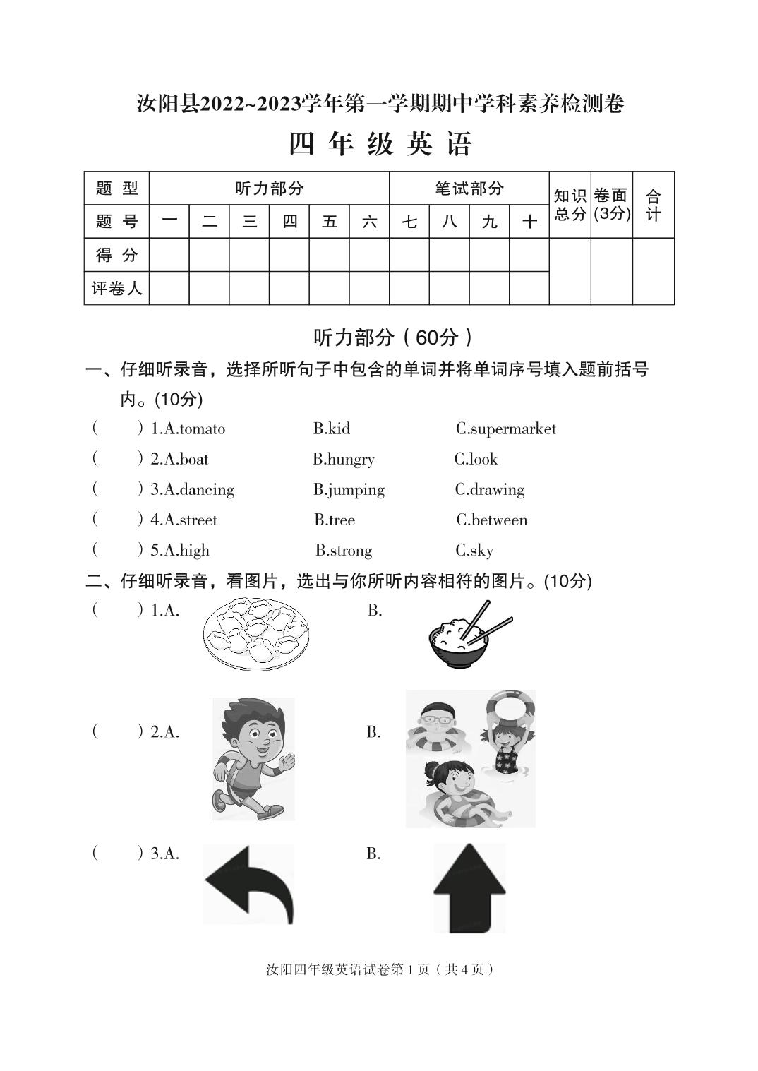 河南省洛阳市汝阳县2022-2023学年上学期期中考试试题四年级英语(外研版)【无听力音频】