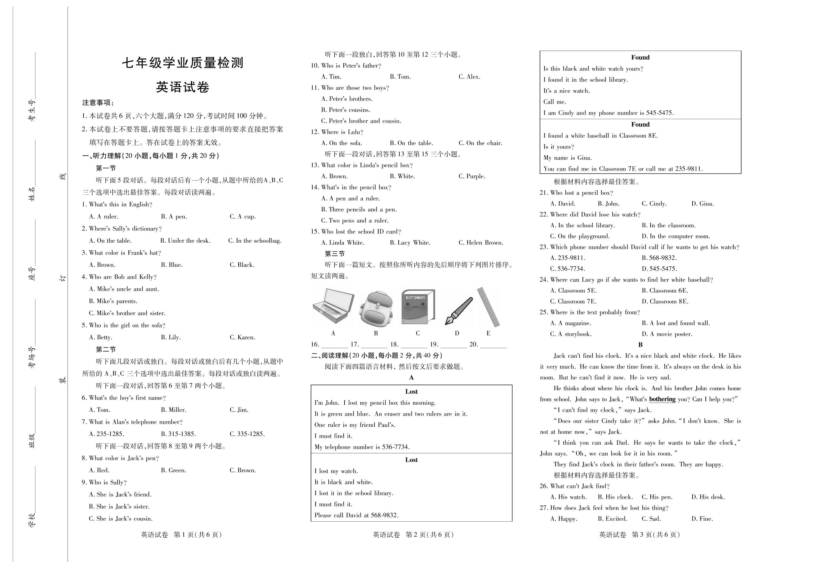河南省安阳市汤阴县2022-2023学年上学期期中质量检测七年级英语(人教版)【无听力音频】