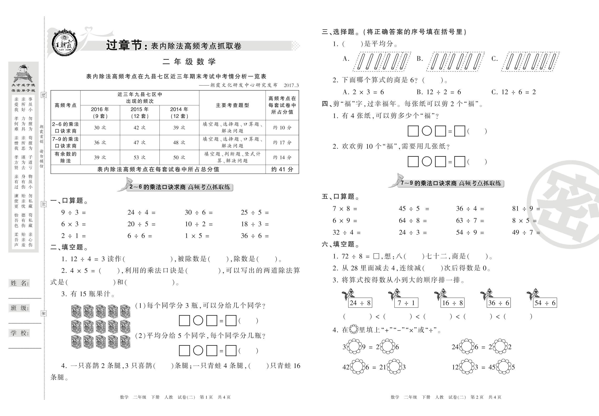 王朝霞期末过章节二年级下册数学(人教版)_R210803100157【2】