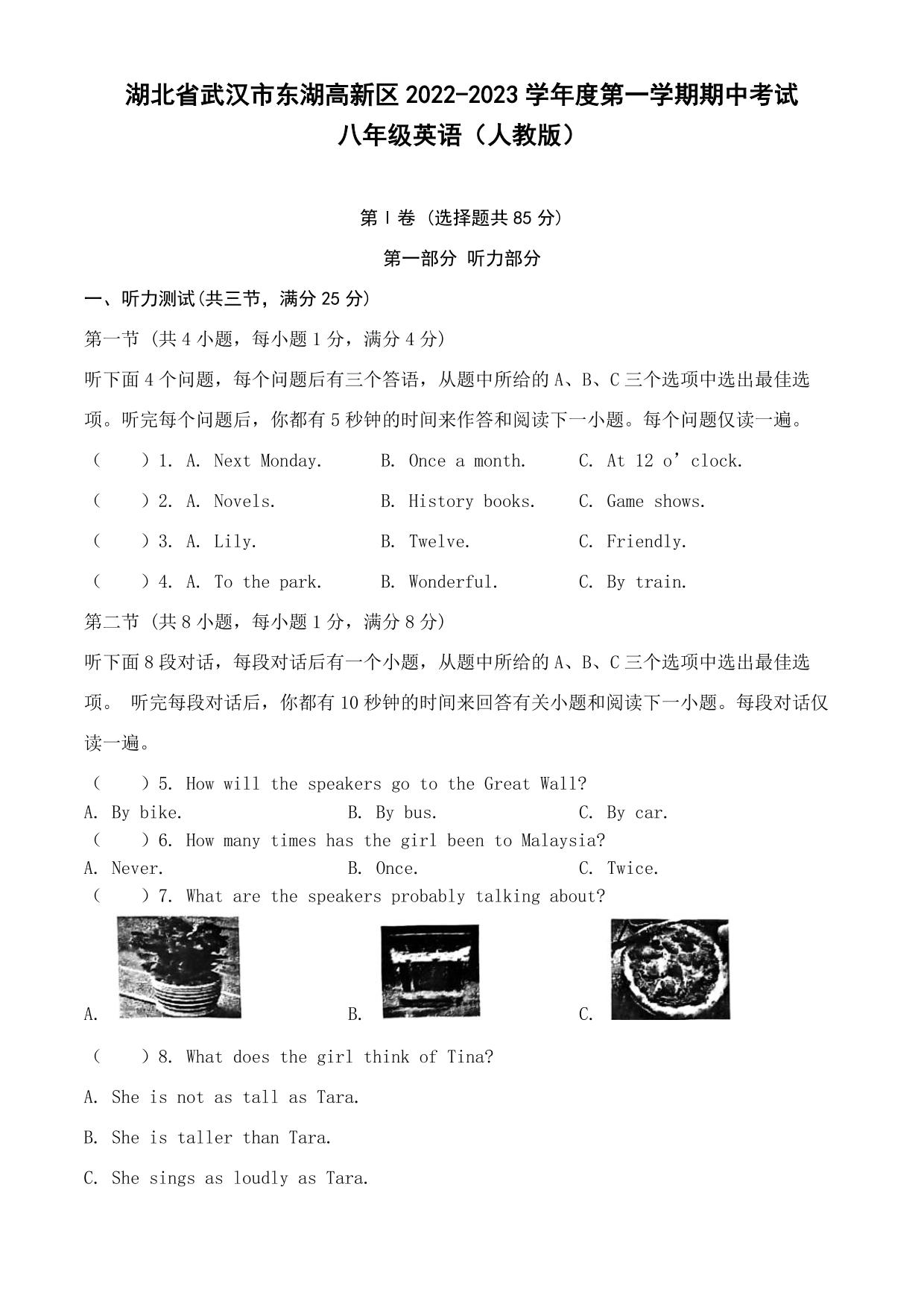 湖北省武汉市东湖高新区2022-2023学年度第一学期期中考试八年级英语(人教版)【无听力音频】
