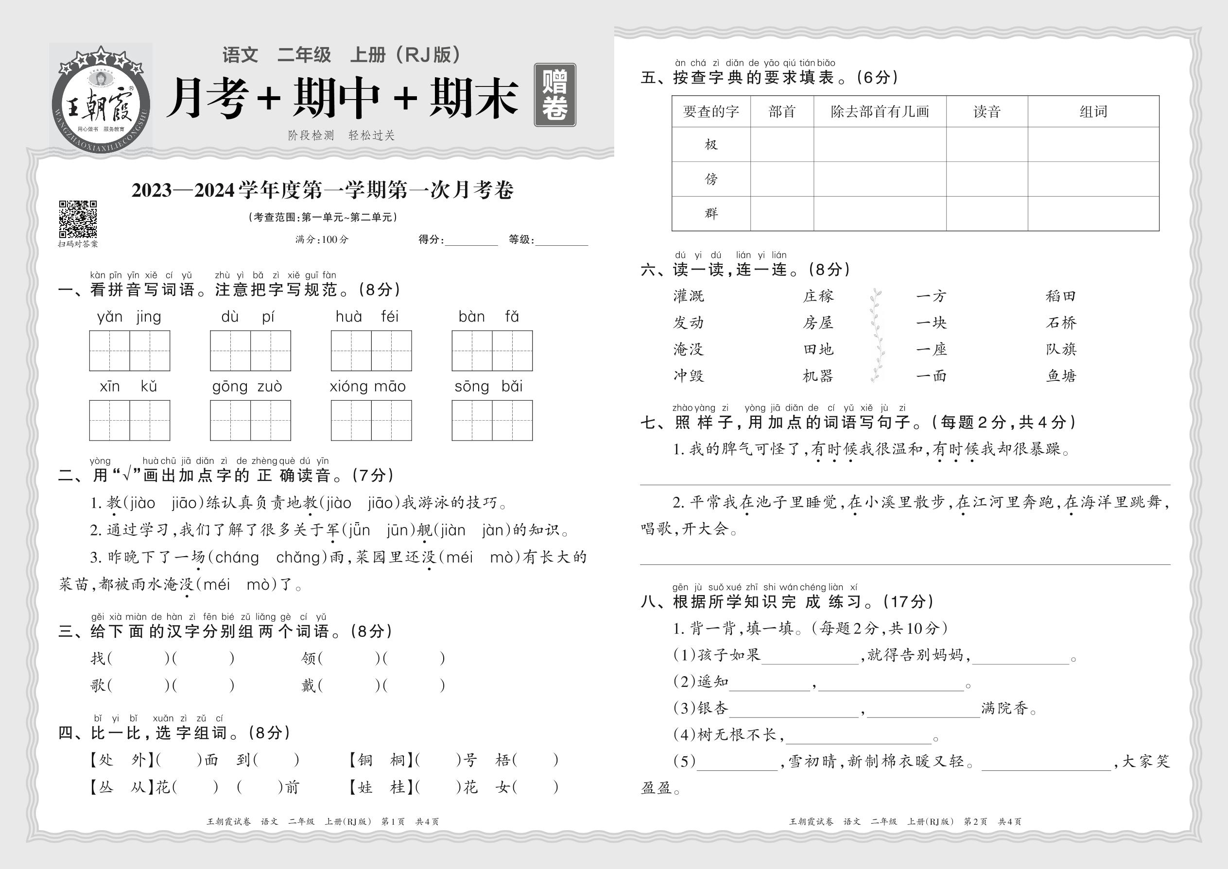 2023—2024学年度第一学期第一次月考卷二年级语文(人教版)