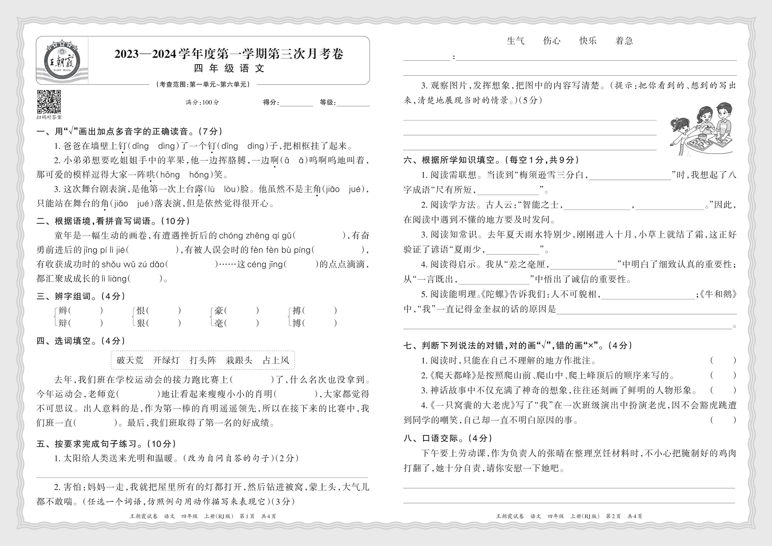 四年级语文人教版上册月考卷
