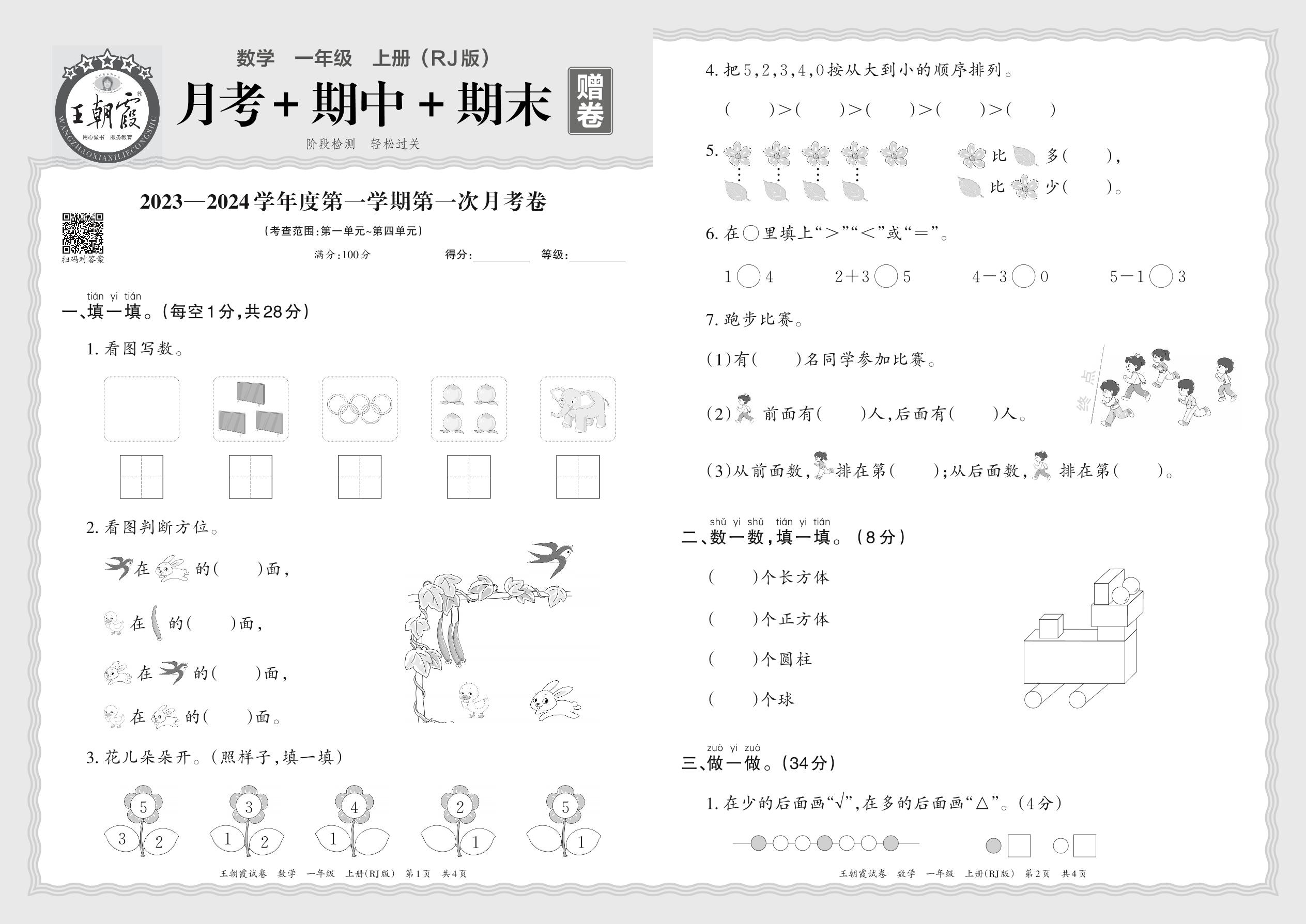 2023—2024学年度第一学期第一次月考卷一年级数学(人教版)