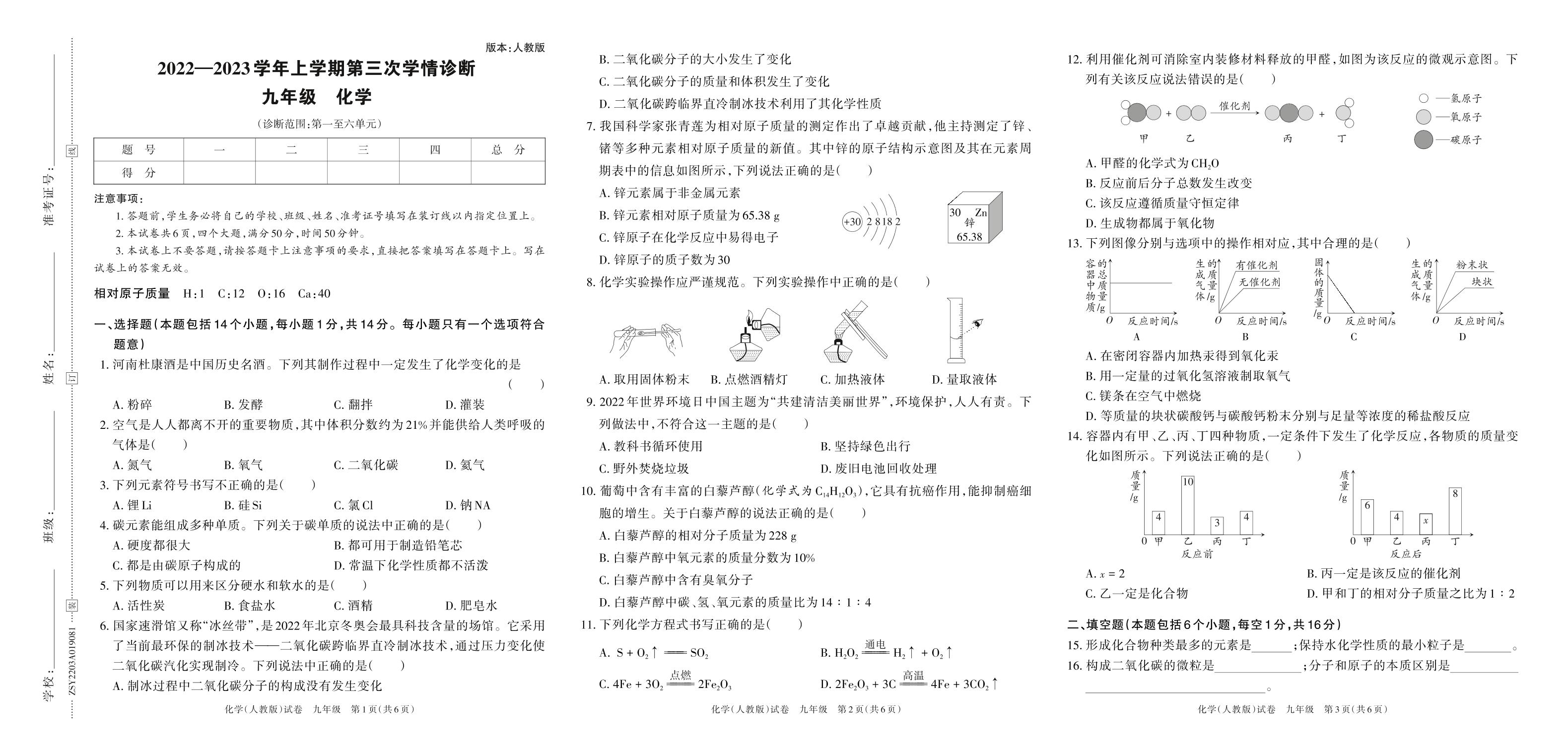 2022—2023学年上学期第三次学情诊断九年级化学(人教版)
