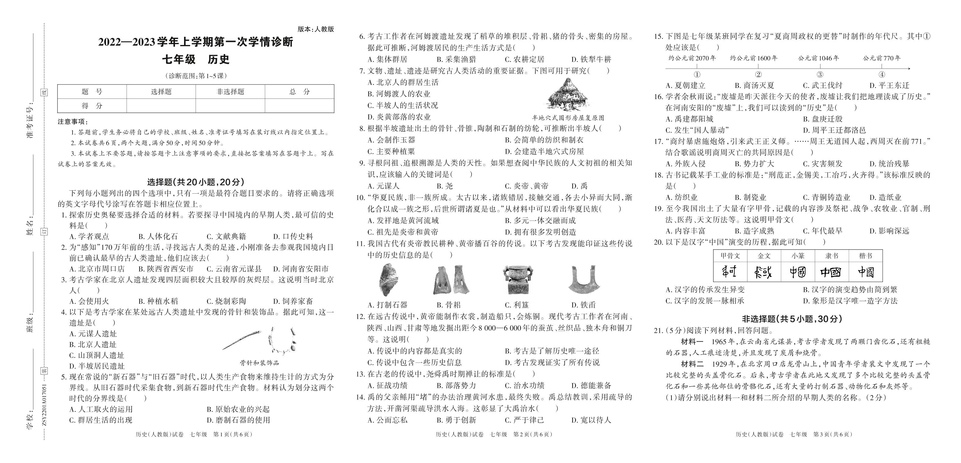 2022—2023学年上学期第一次学情诊断七年级历史(人教版)