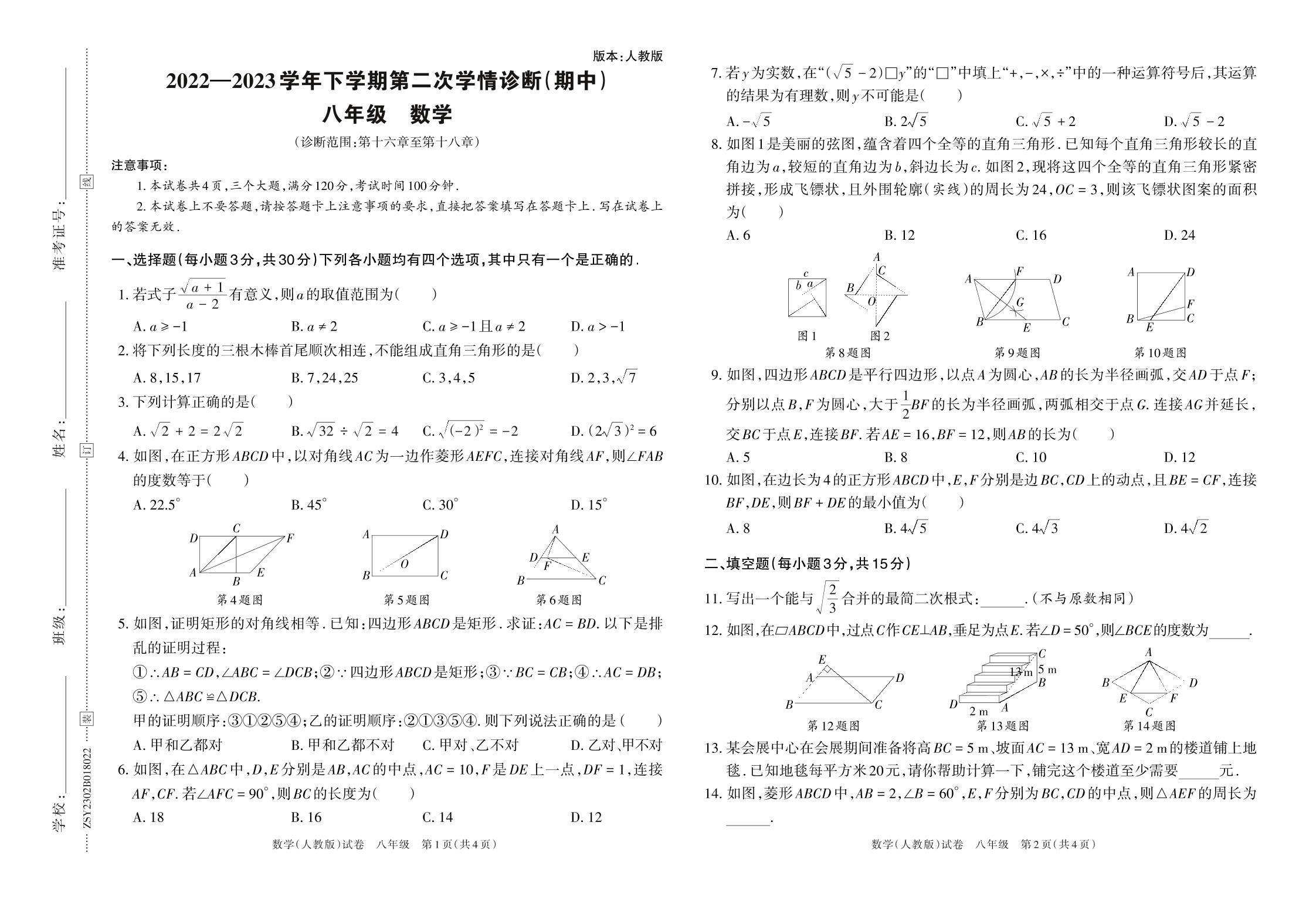 2022—2023学年下学期第二次学情诊断(期中)B卷八年级数学(人教版)