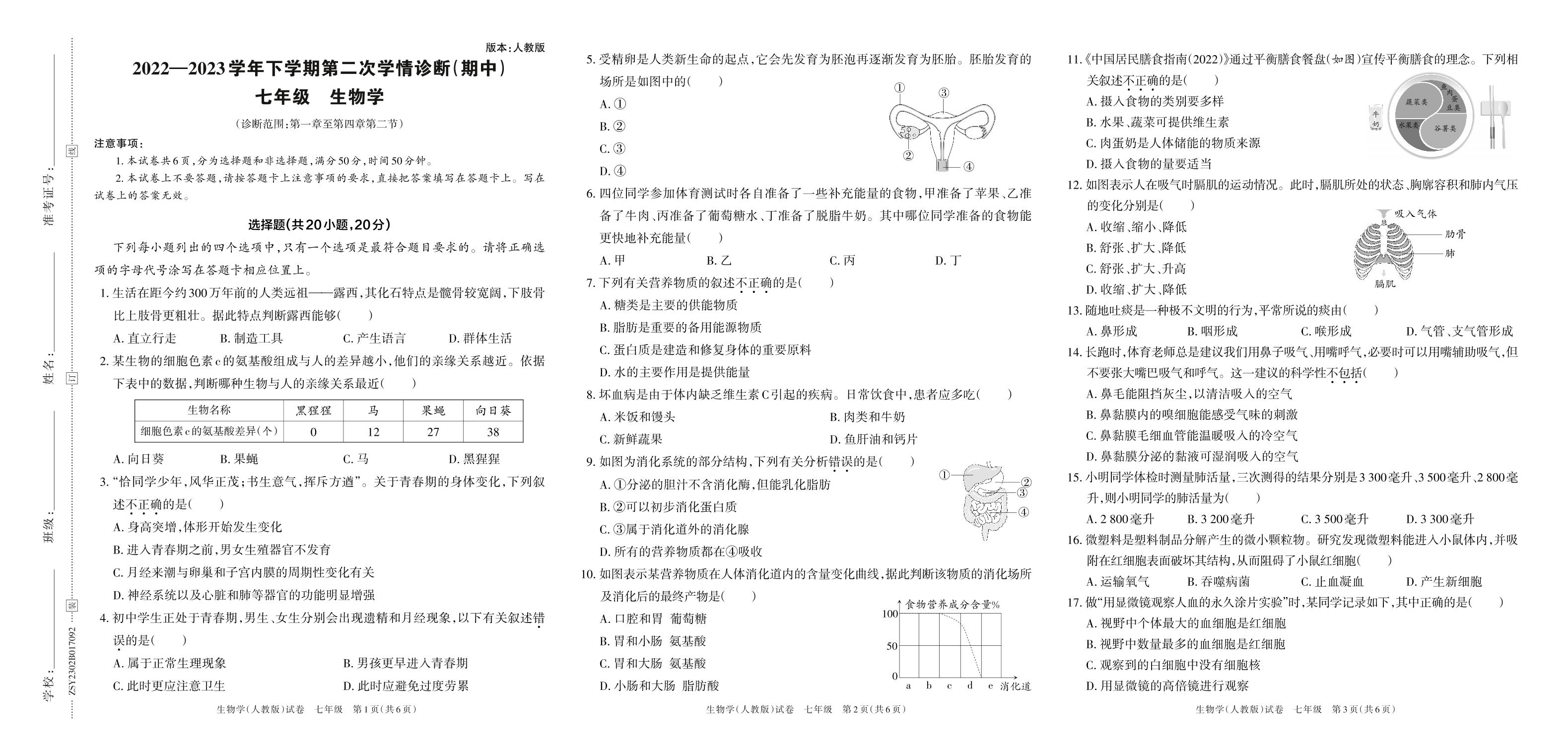 2022—2023学年下学期第二次学情诊断(期中)B卷七年级生物(人教版)