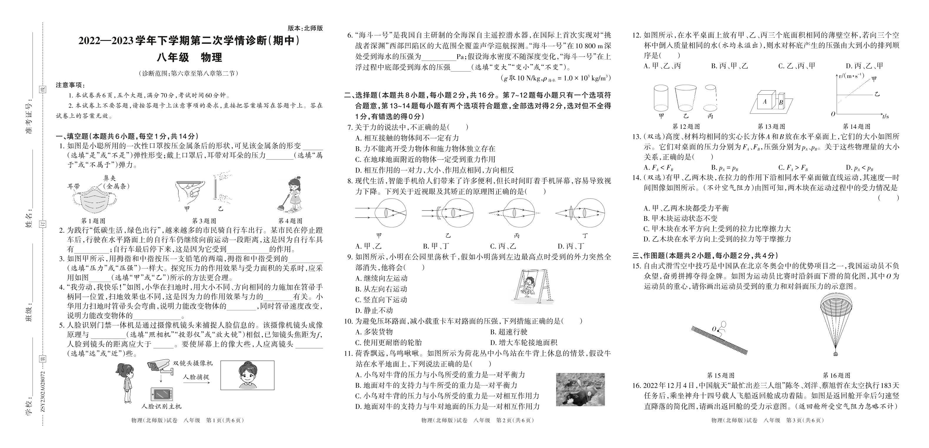 2022—2023学年下学期第二次学情诊断(期中)试卷八年级物理(北师版)