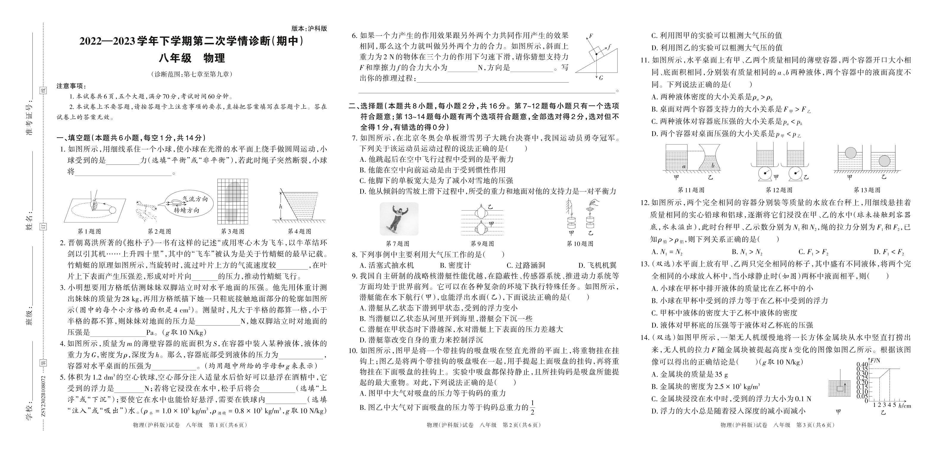 2022—2023学年下学期第二次学情诊断(期中)B卷八年级物理(沪科版)