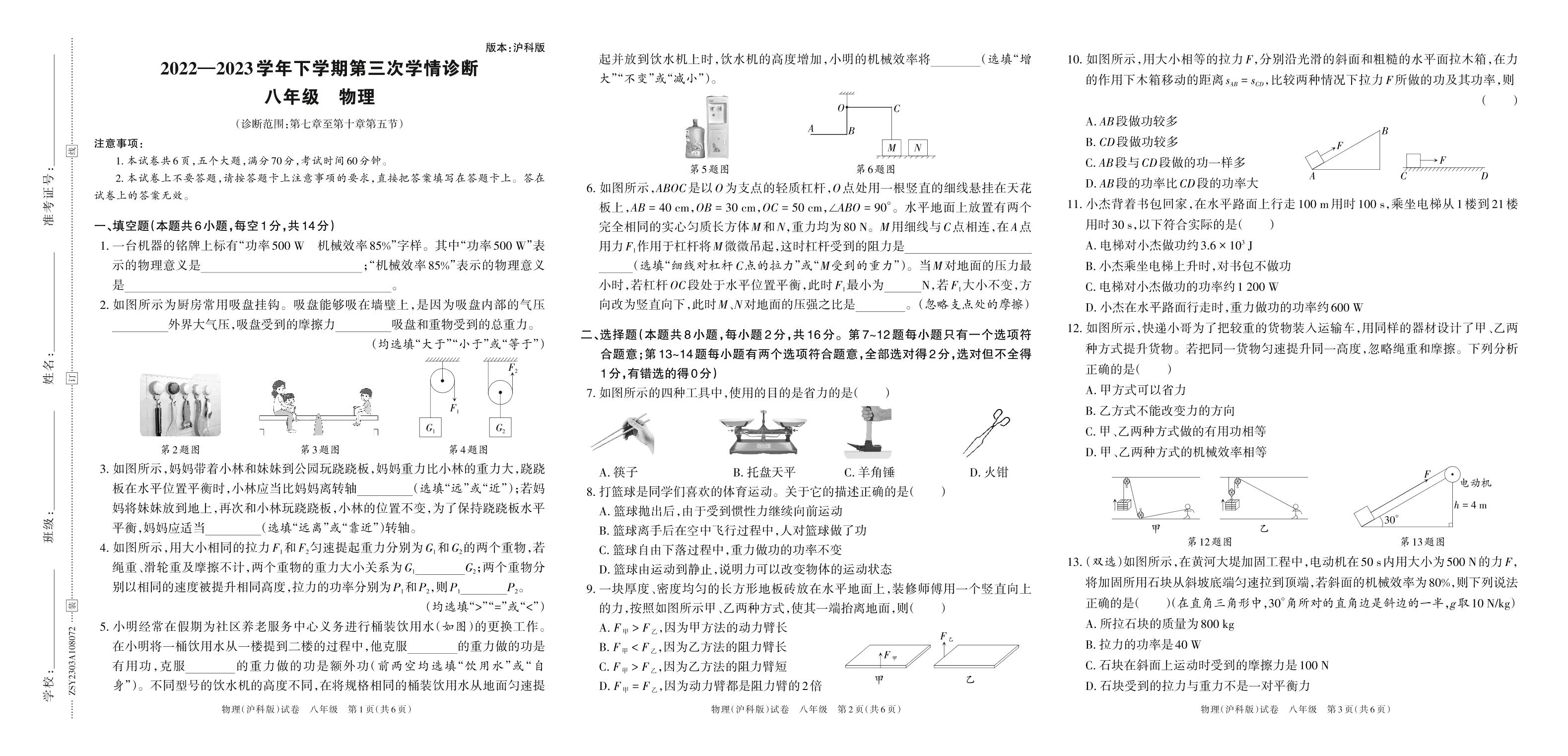 2022—2023学年下学期第三次学情诊断A卷八年级物理(沪科版)