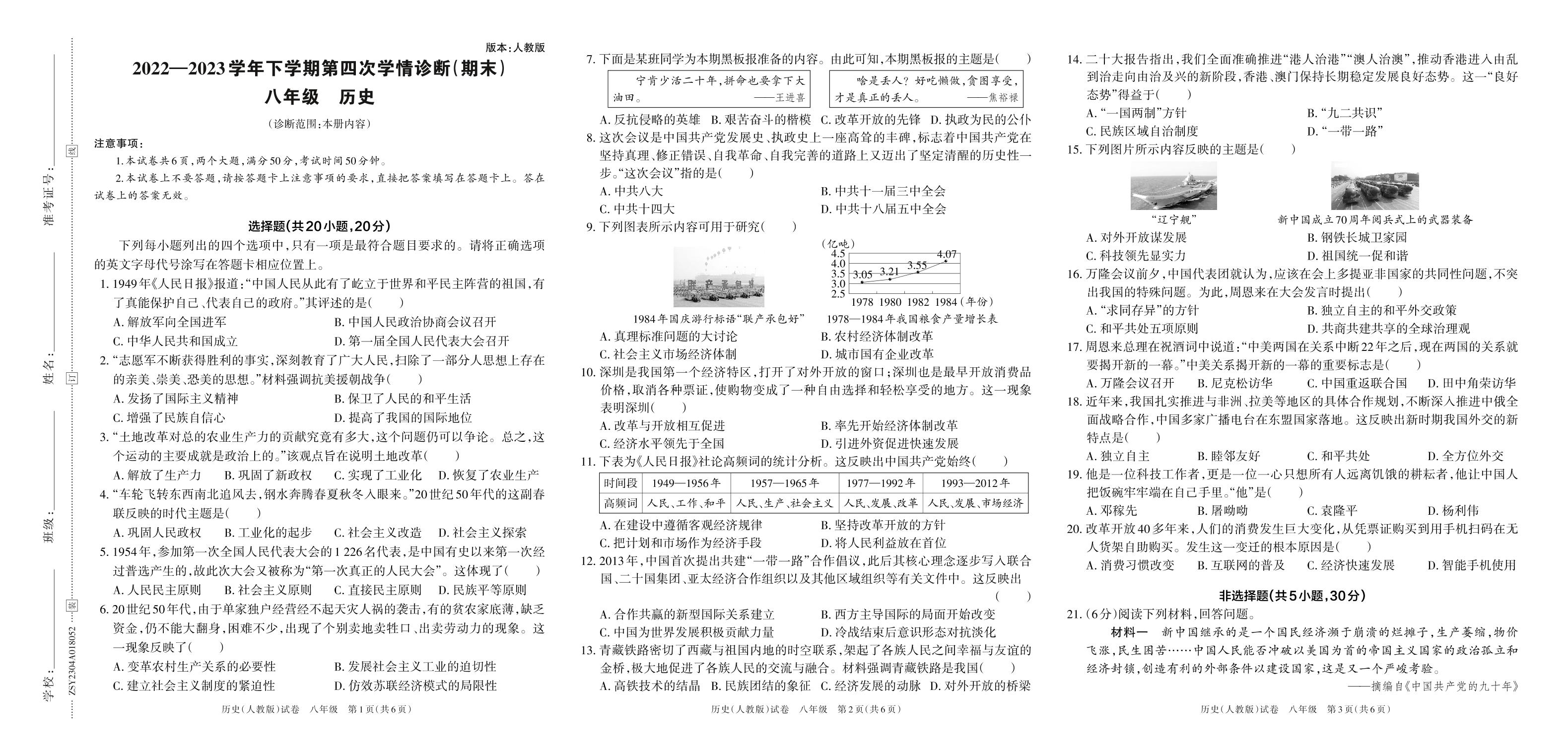 2022—2023学年下学期第四次学情诊断(期末)A卷八年级历史(人教版)