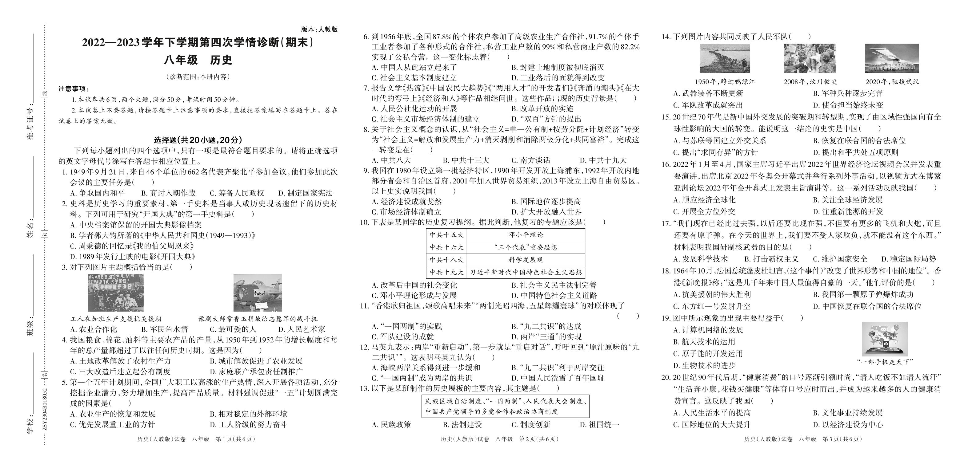 2022—2023学年下学期第四次学情诊断(期末)B卷八年级历史(人教版)