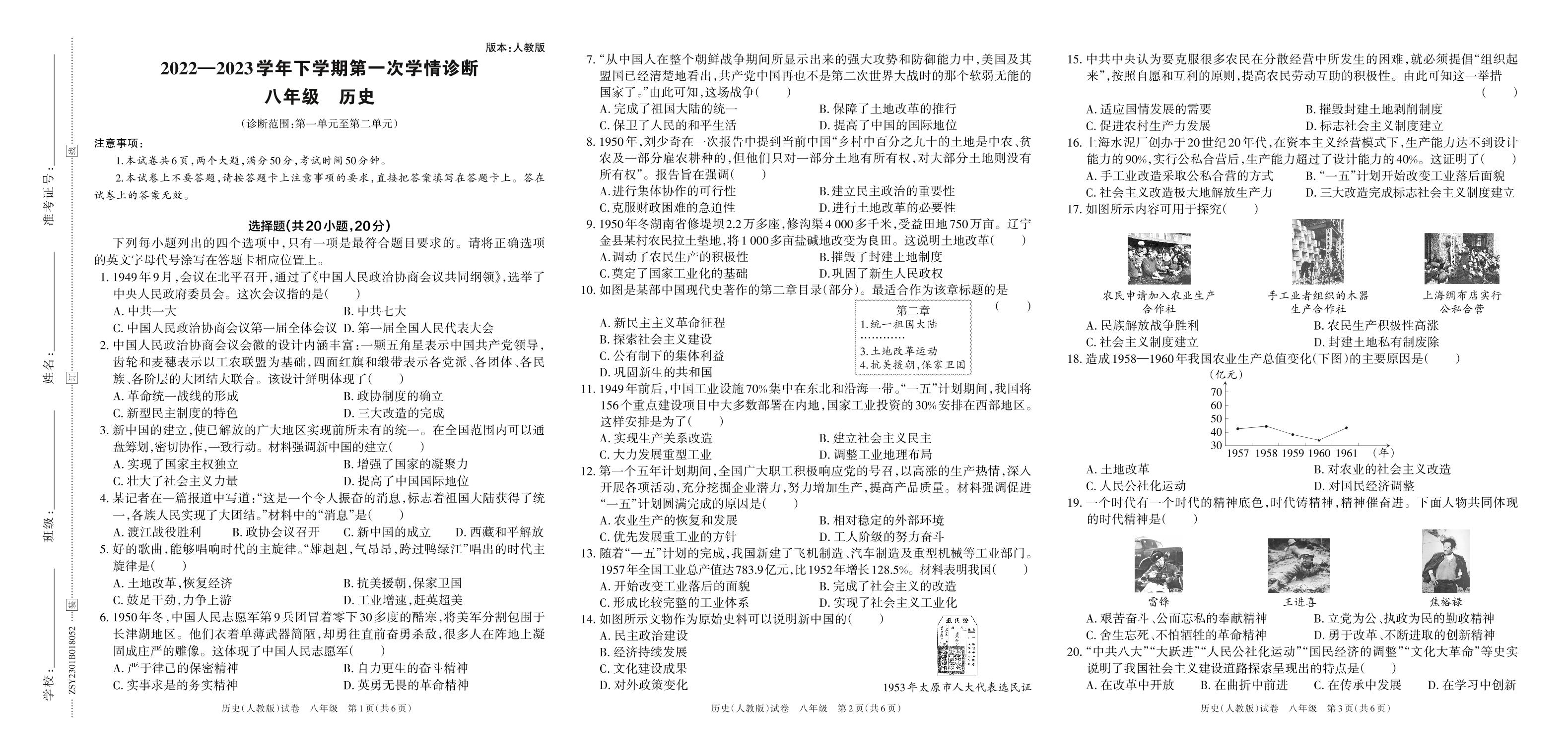 2022—2023学年下学期第一次学情诊断B卷八年级历史(人教版)