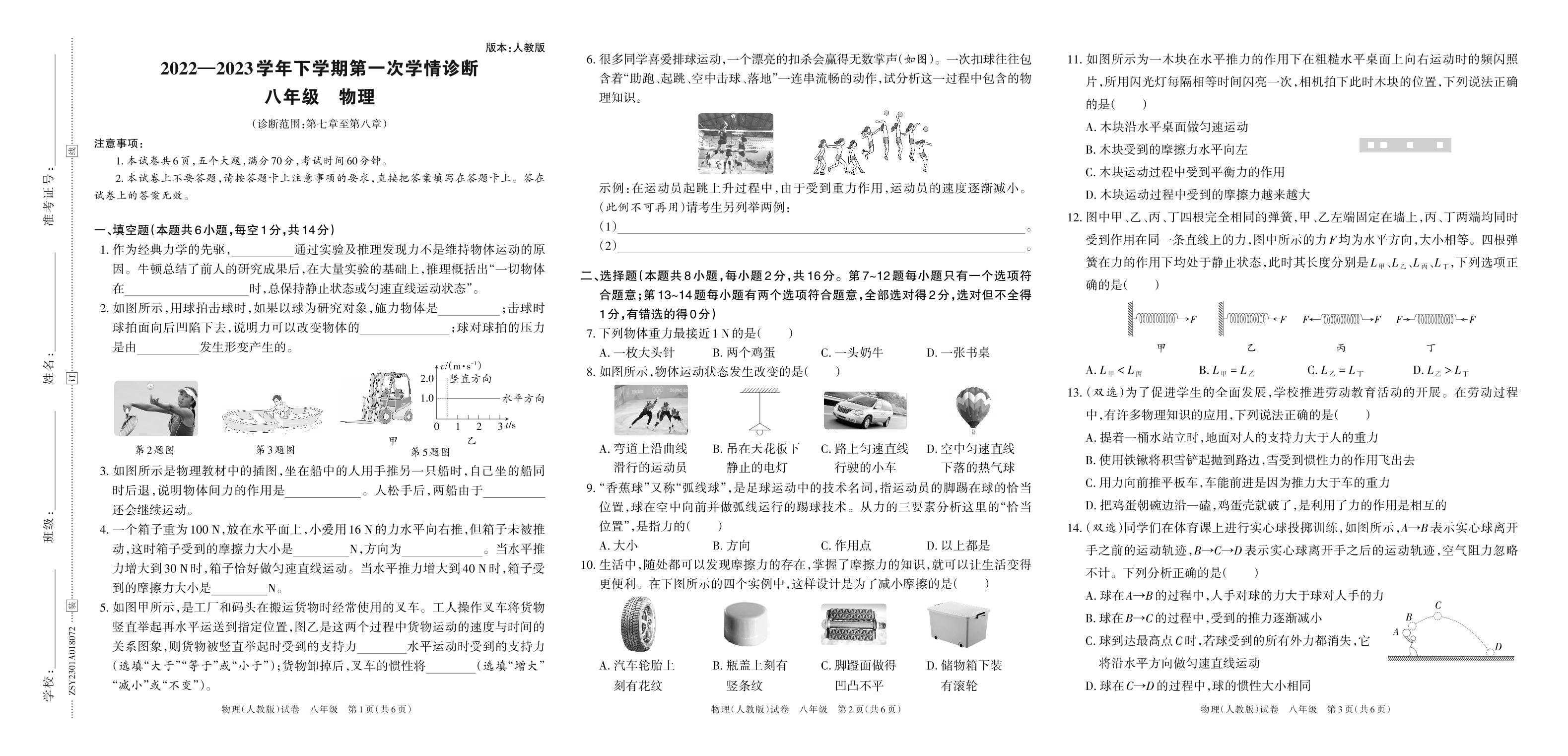 2022—2023学年下学期第一次学情诊断A卷八年级物理(人教版)