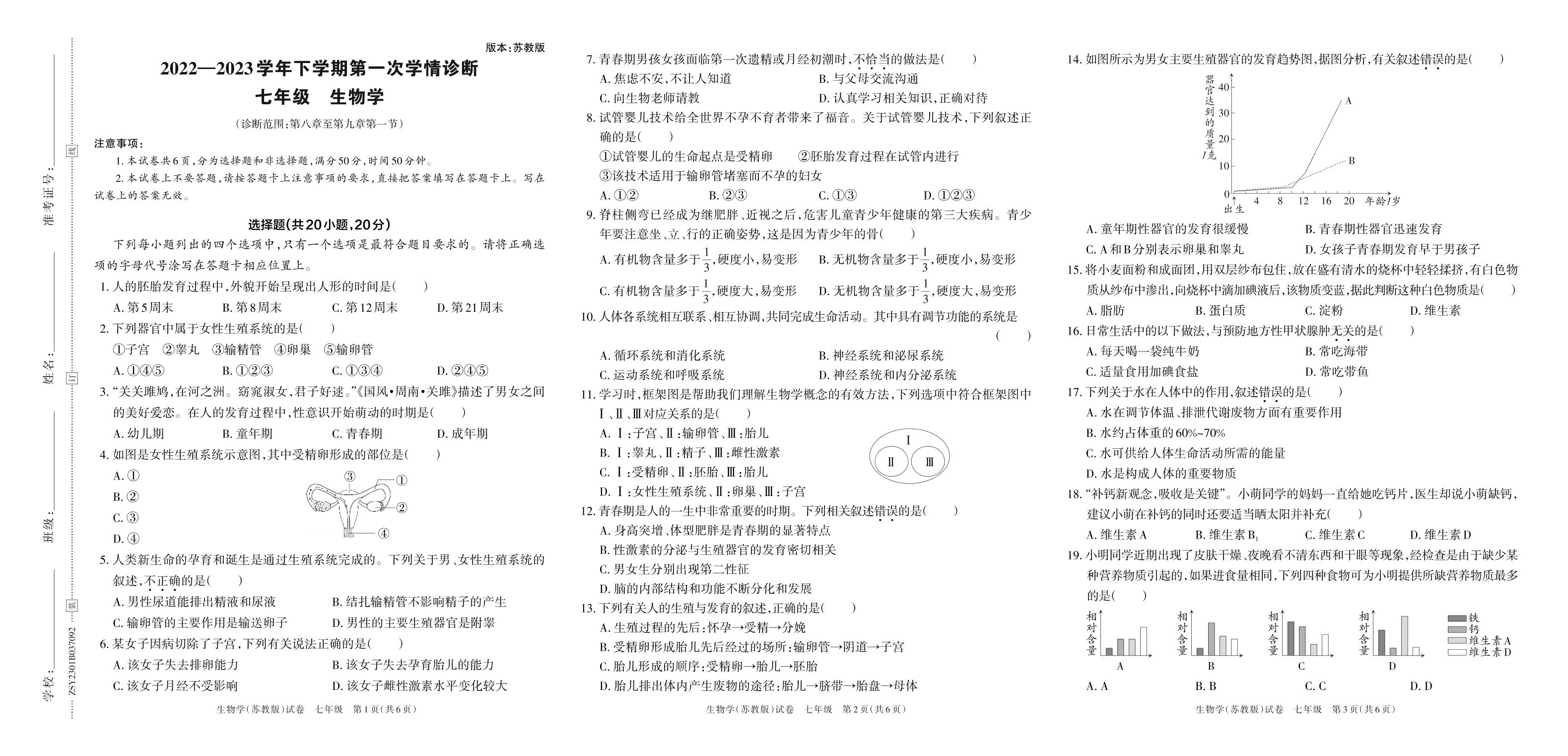 2022—2023学年下学期第一次学情诊断B卷七年级生物(苏教版)
