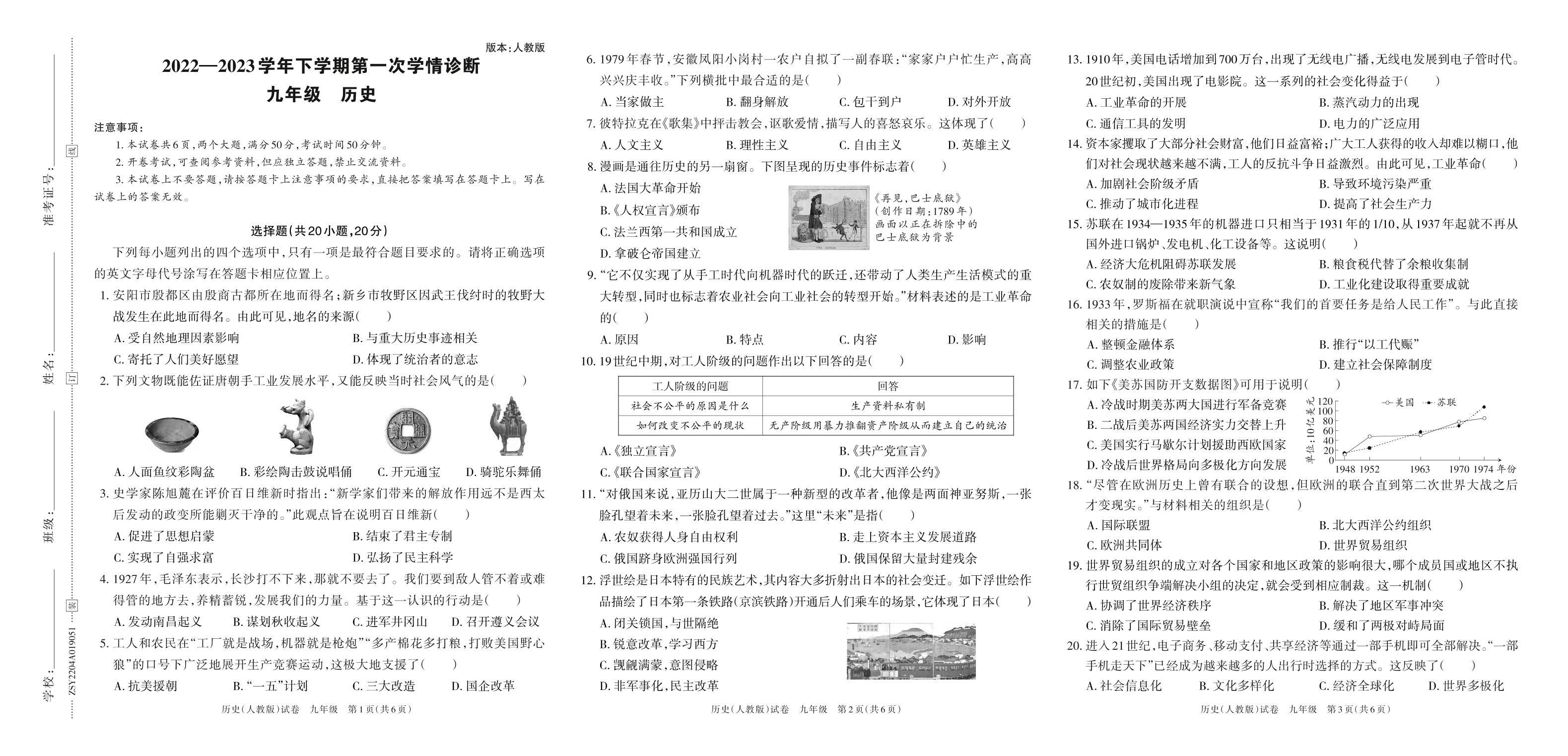 河南省洛阳市宜阳县2022—2023学年下学期第一次学情诊断试卷九年级历史(人教版)