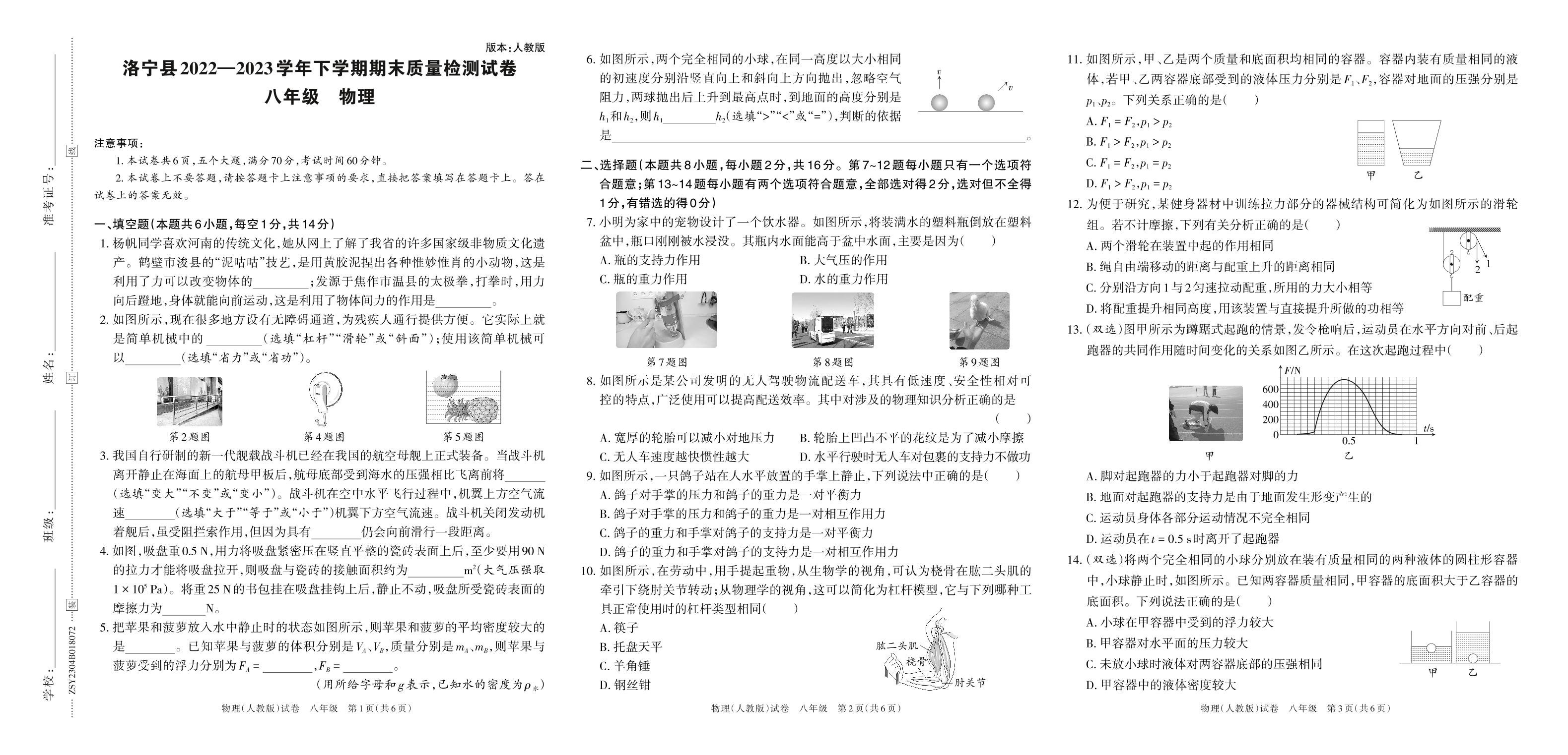 八年级物理人教版下册期末卷