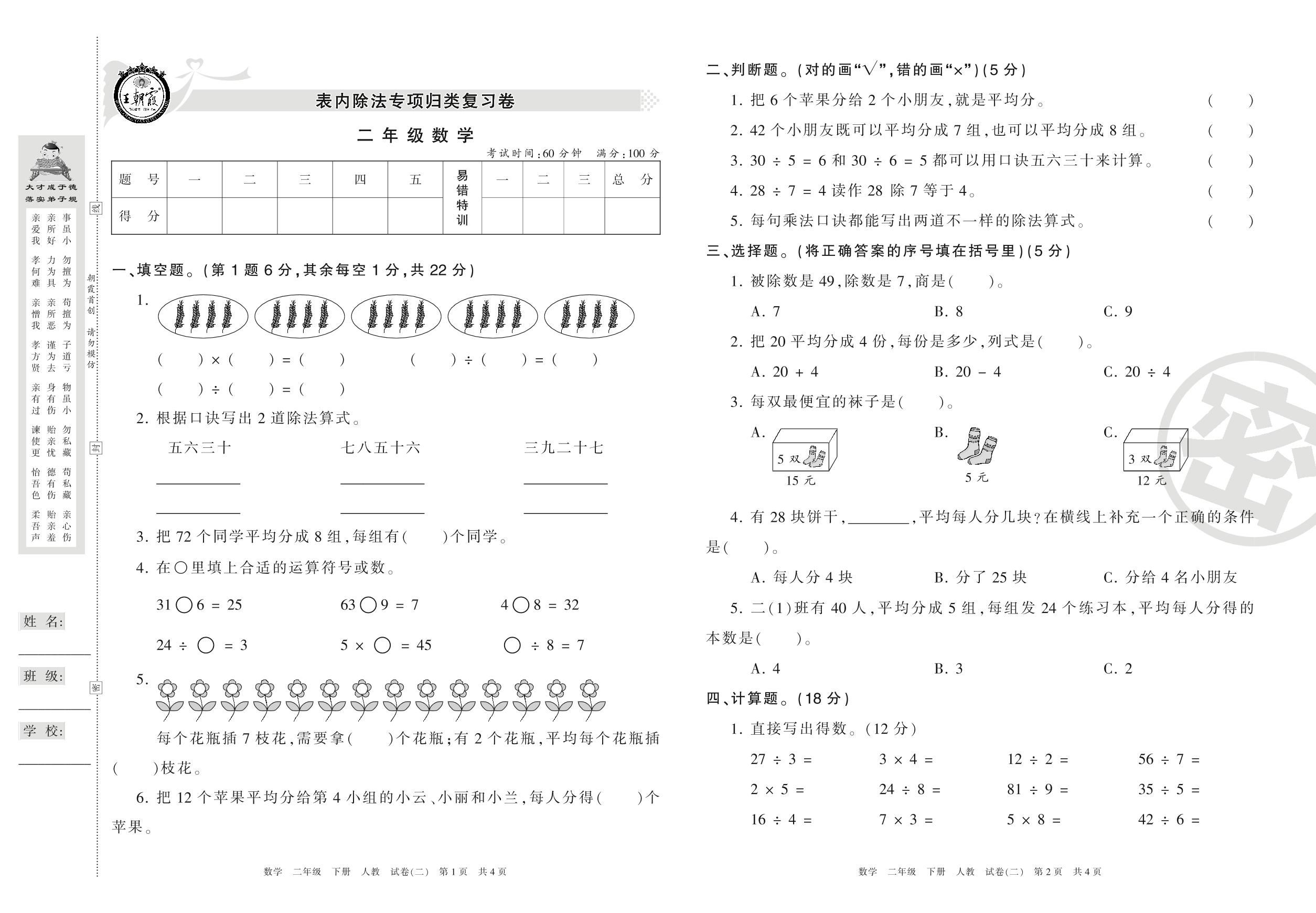 王朝霞期末专项卷二年级下册数学(人教版)_R210803100857【2】