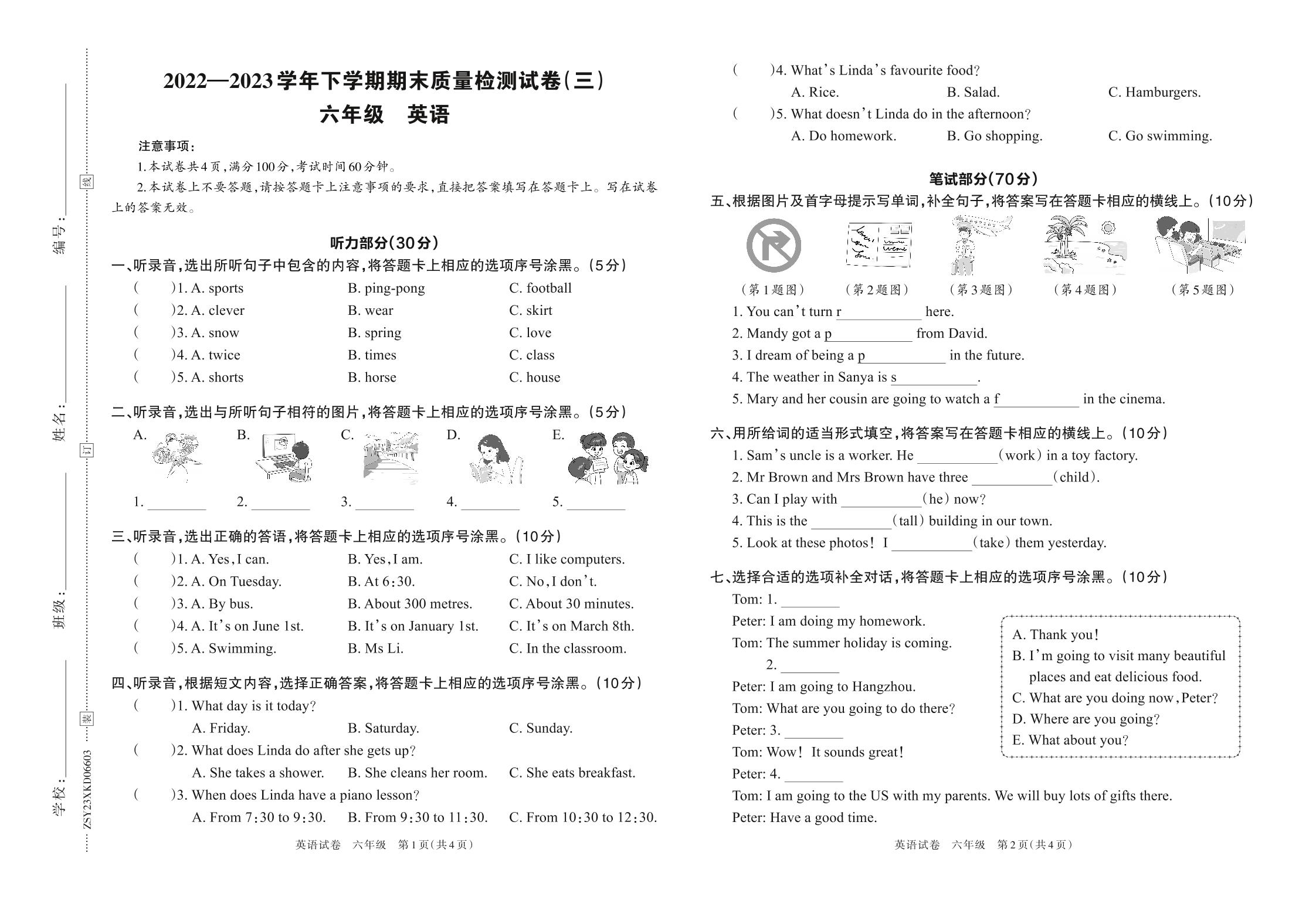 河南省洛阳市栾川县2022—2023学年下学期期末质量检测试卷(三)六年级英语(外研版)