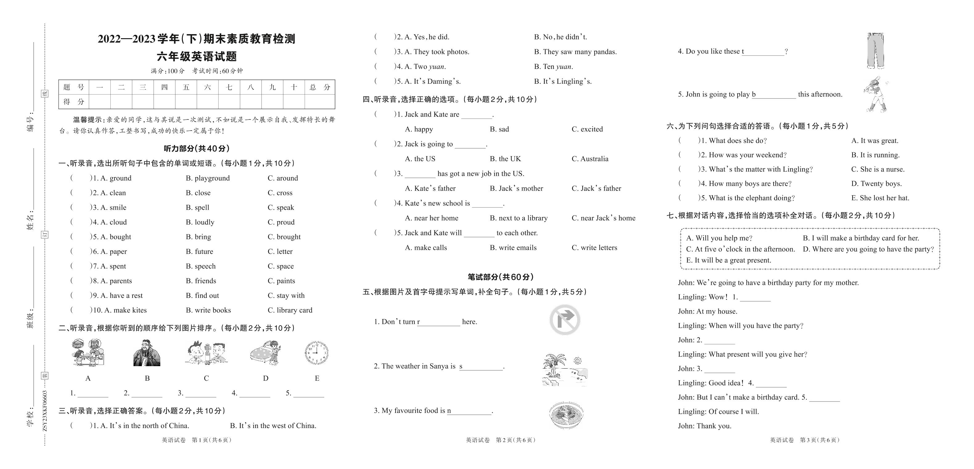 河南省焦作市孟州市2022—2023学年(下)期末素质教育检测试题六年级英语(外研版)