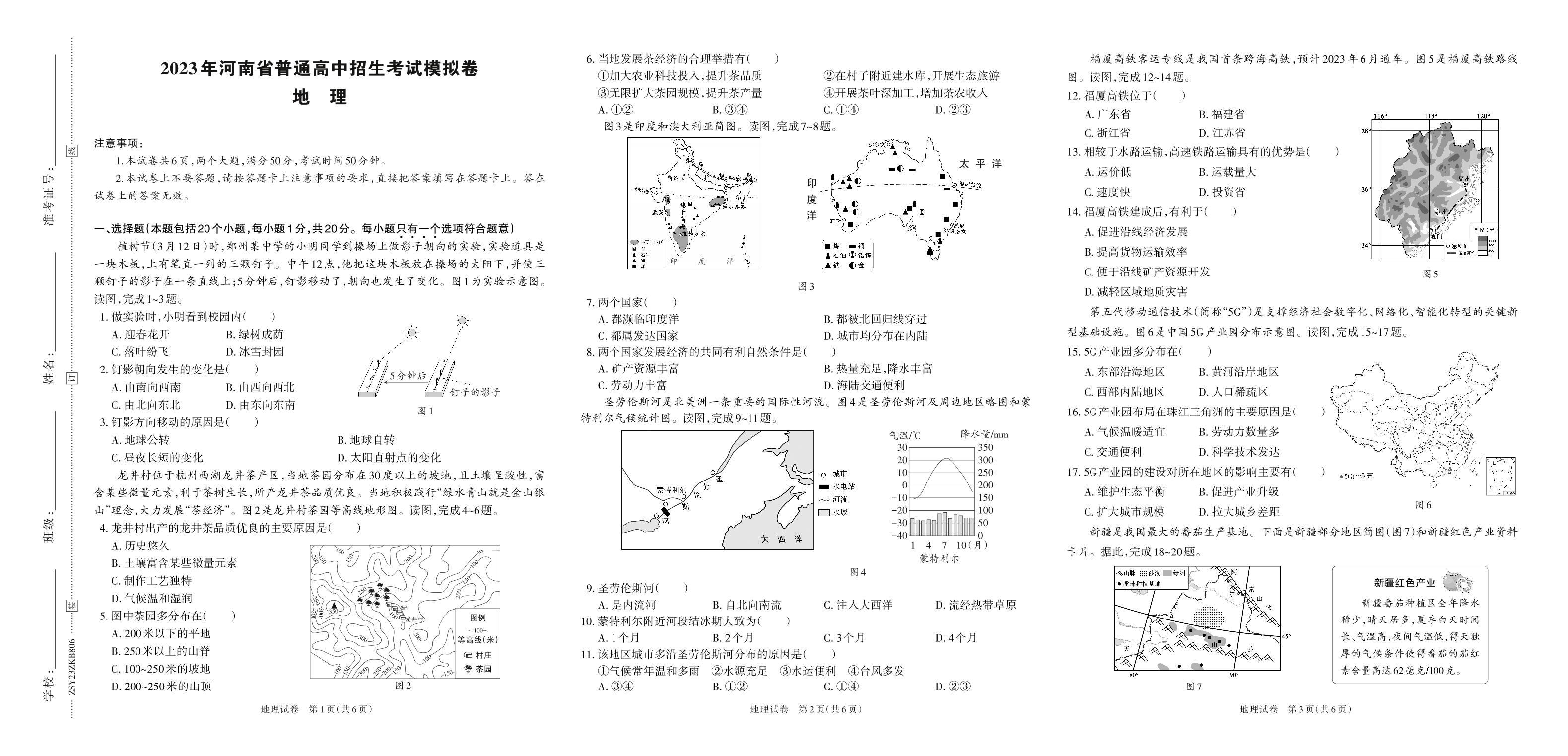 河南省2023年普通高中招生考试模拟卷(B)·地理