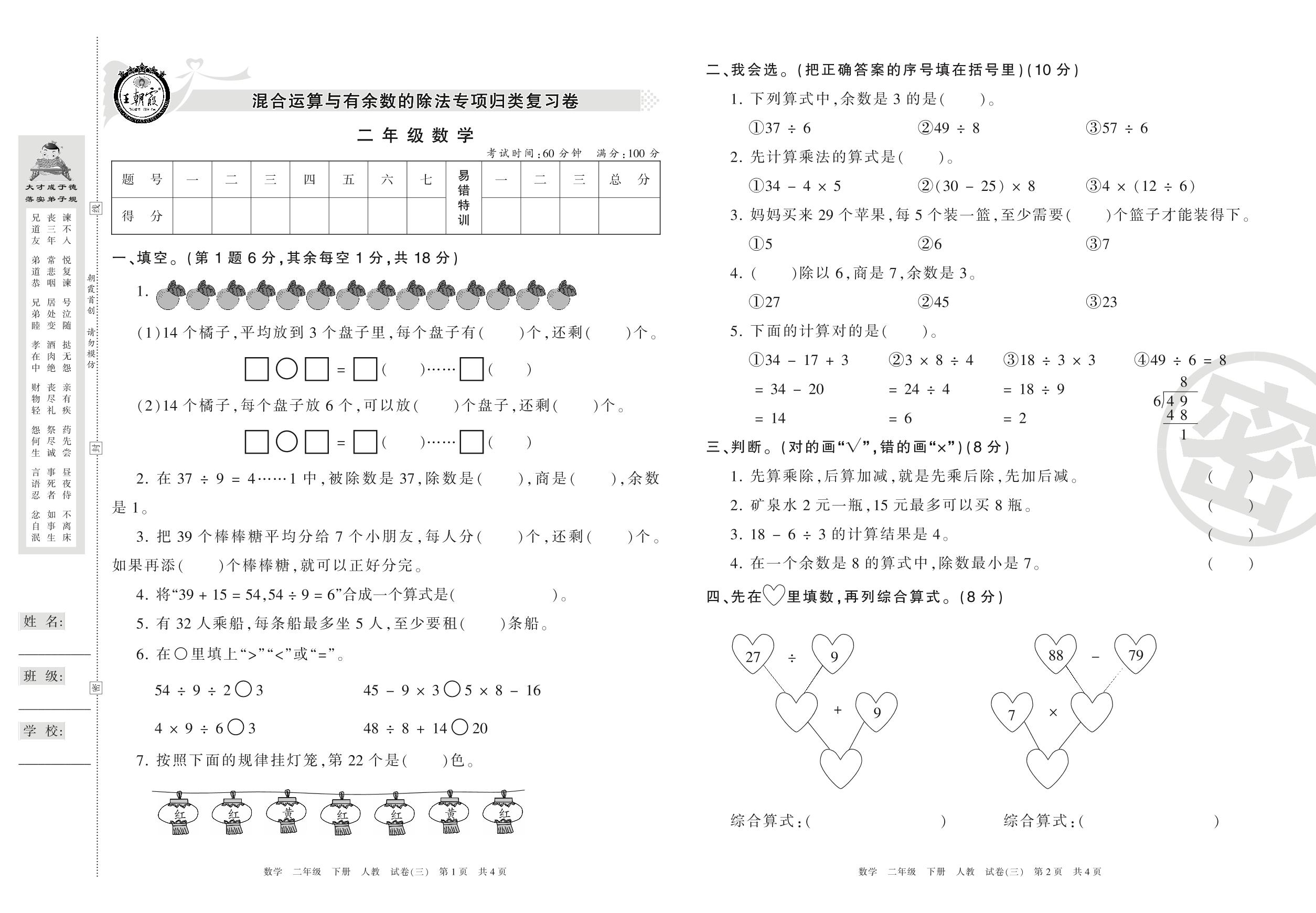 王朝霞期末专项卷二年级下册数学(人教版)_R210803101020【3】