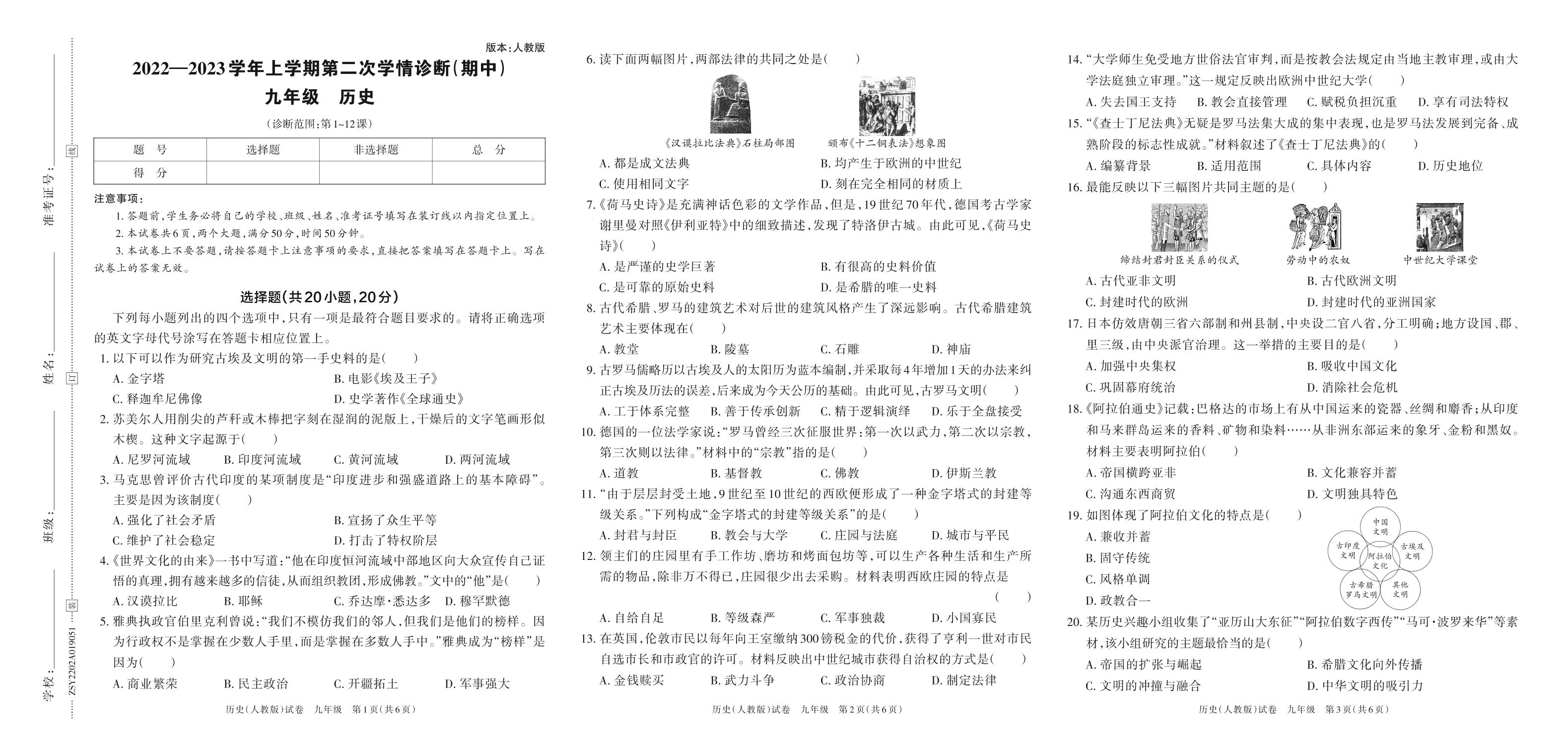 河南省洛阳市孟津县直中学2022-2023学年上学期第二次学情诊断卷(期中)九年级历史(人教版)