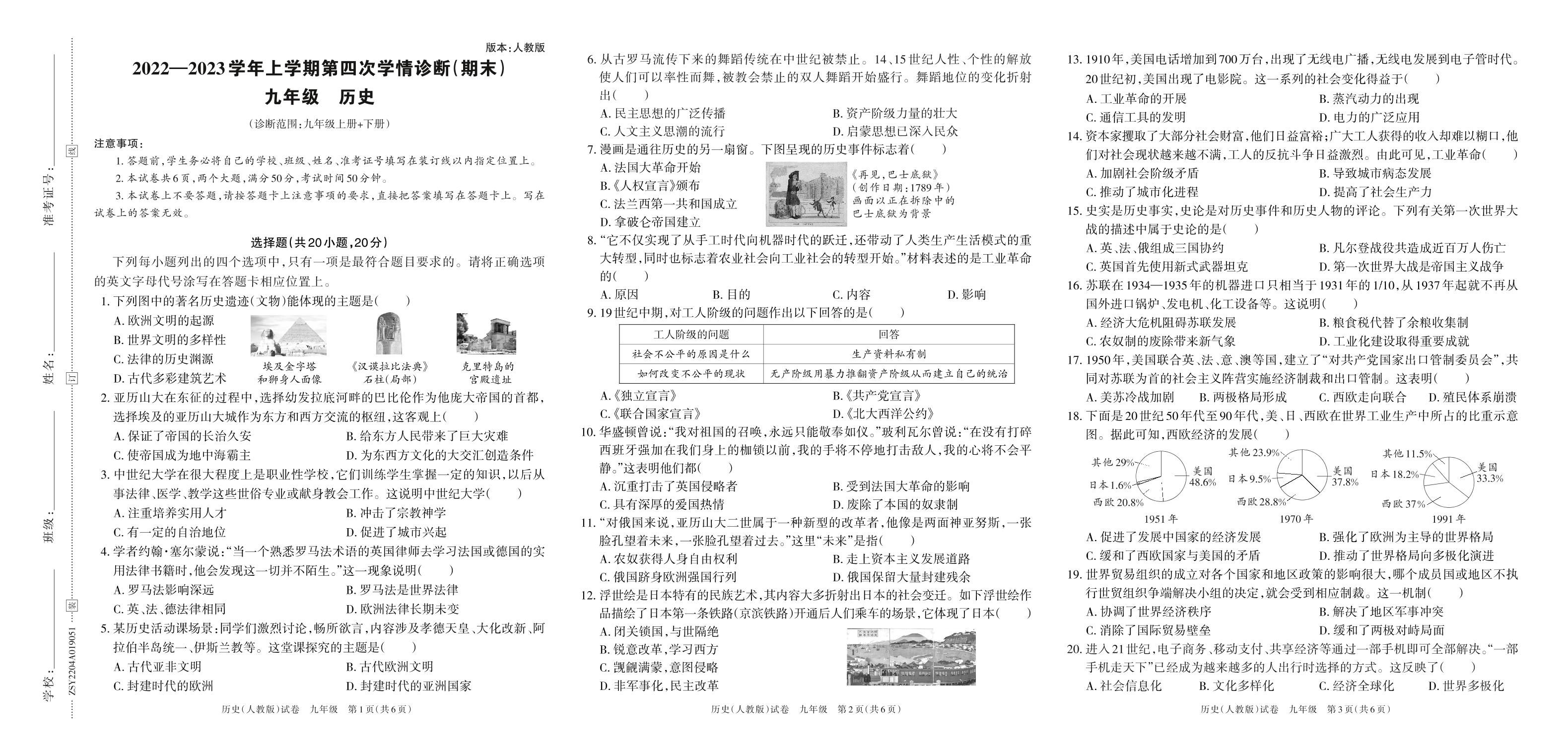 河南省巩义市第四初级中学2022-2023学年上学期第四次学情诊断卷(期中)九年级历史(人教版)