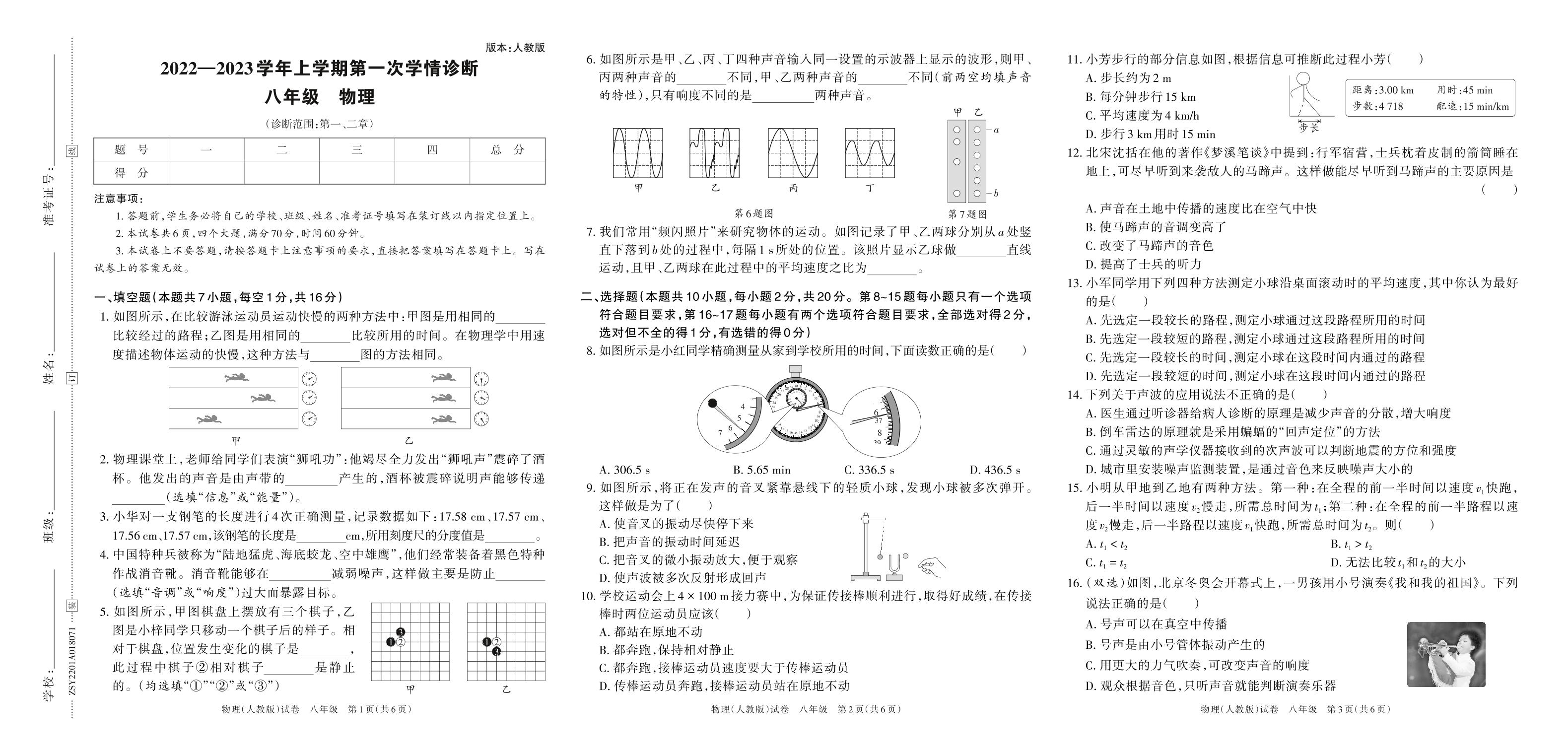 河南省洛阳市孟津区白鹤镇初级中学2022-2023学年上学期第一次学情诊断卷八年级物理(人教版)