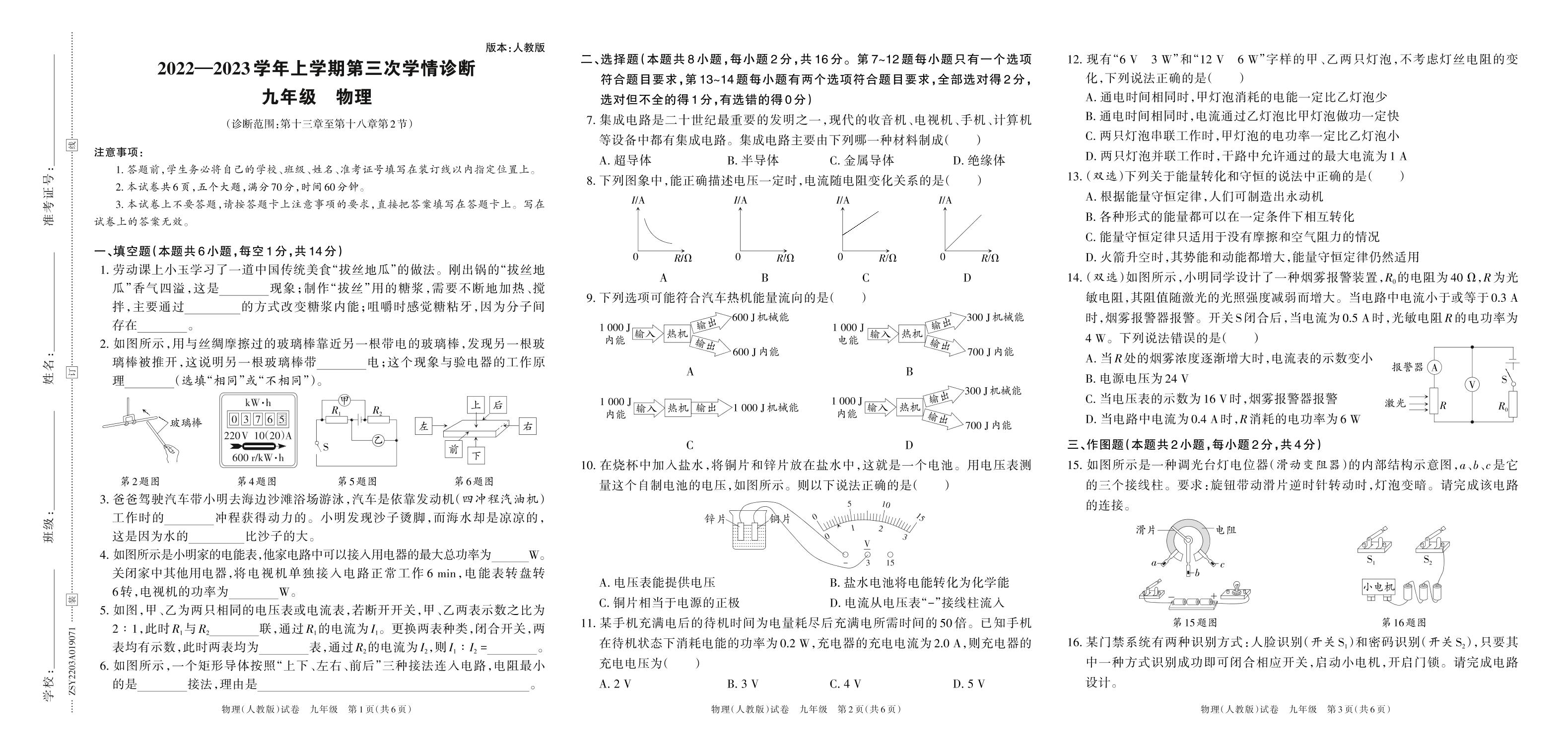 河南省洛阳市宜阳县2022-2023学年上学期第三次学情诊断卷九年级物理(人教版)