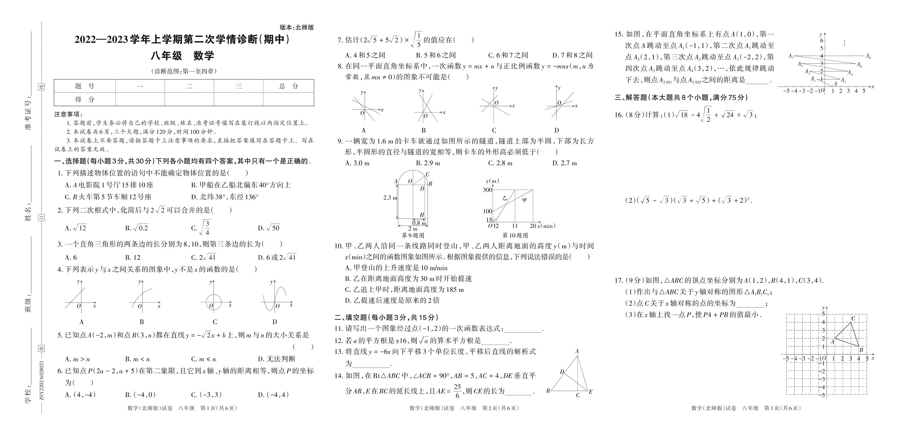 2022—2023学年上学期第二次学情诊断(期中)八年级数学(北师版)