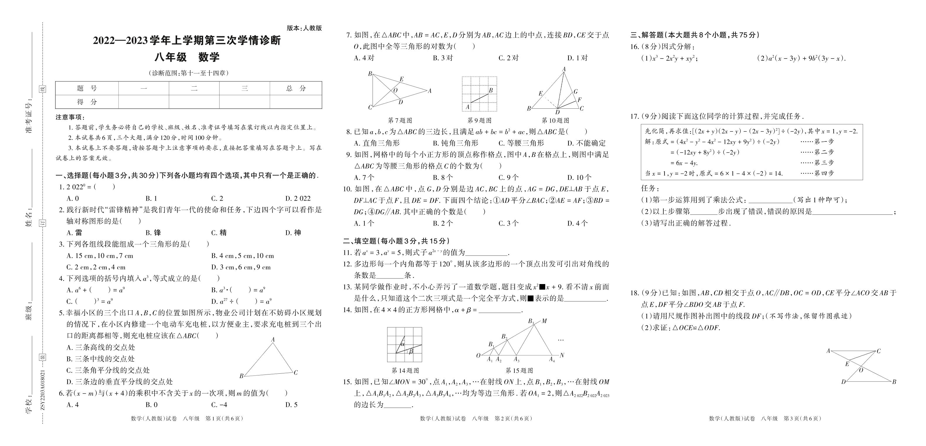 2022—2023学年上学期第三次学情诊断八年级数学(人教版)_R231012105741299
