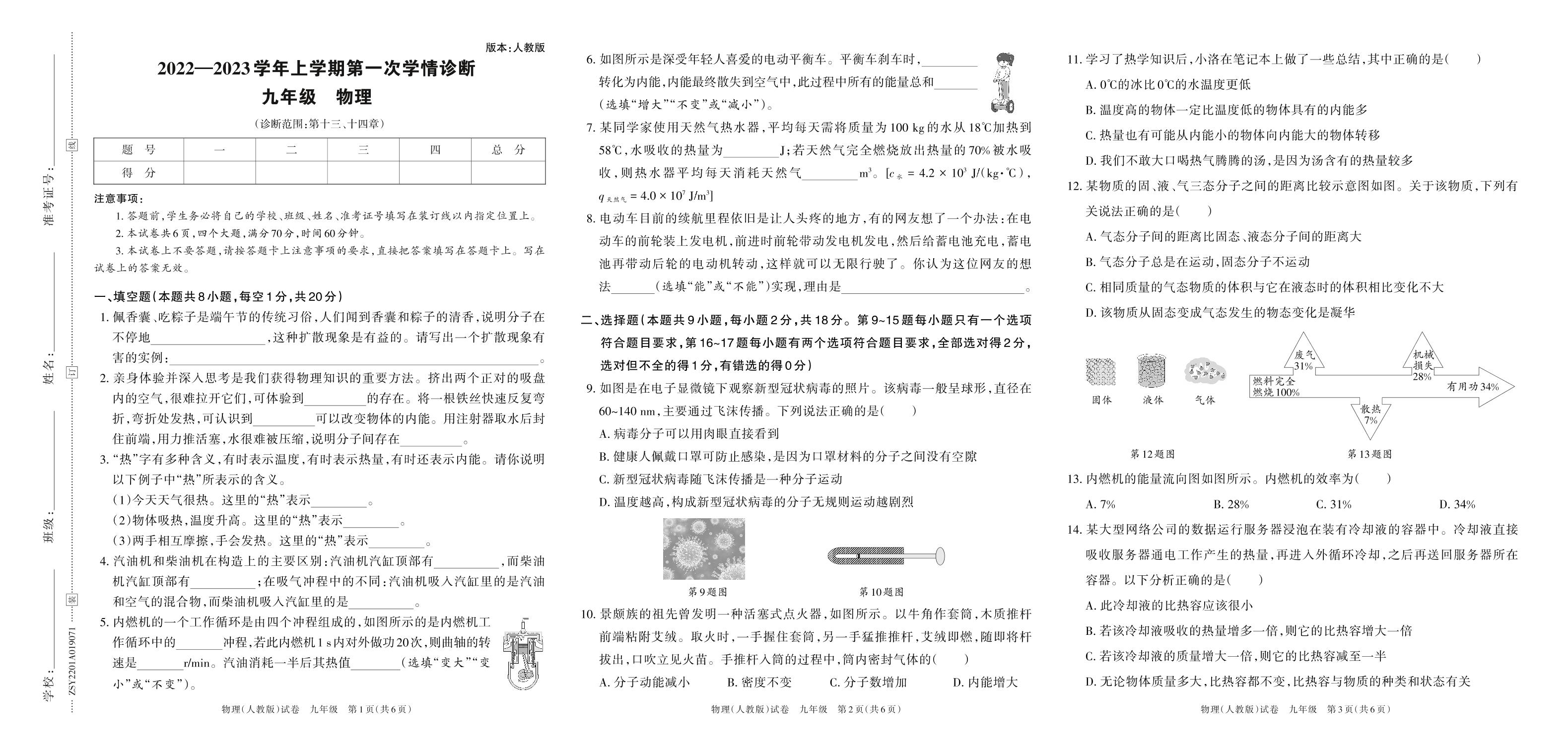 2022—2023学年上学期第一次学情诊断九年级物理(人教版)