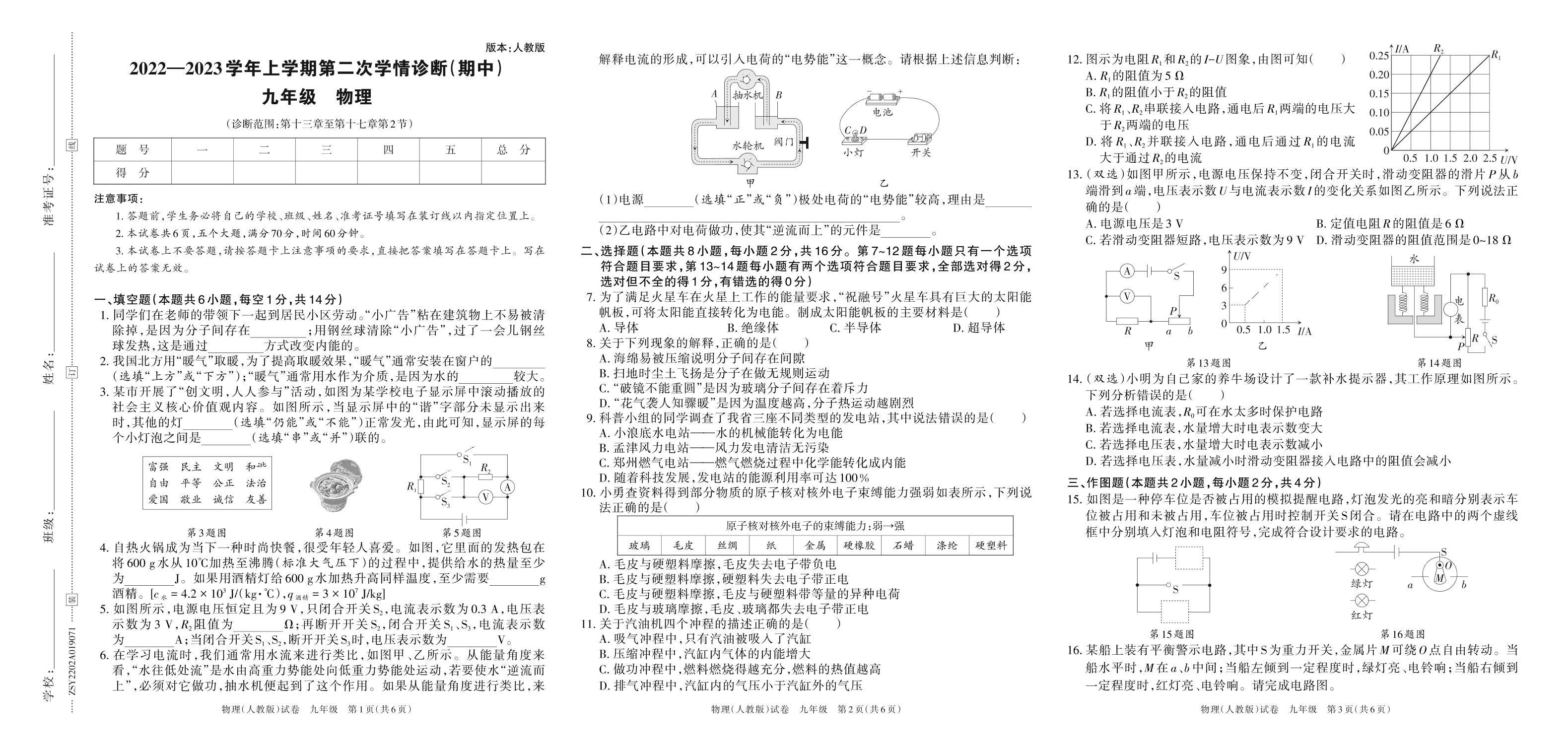 2022—2023学年上学期第二次学情诊断(期中)九年级物理(人教版)